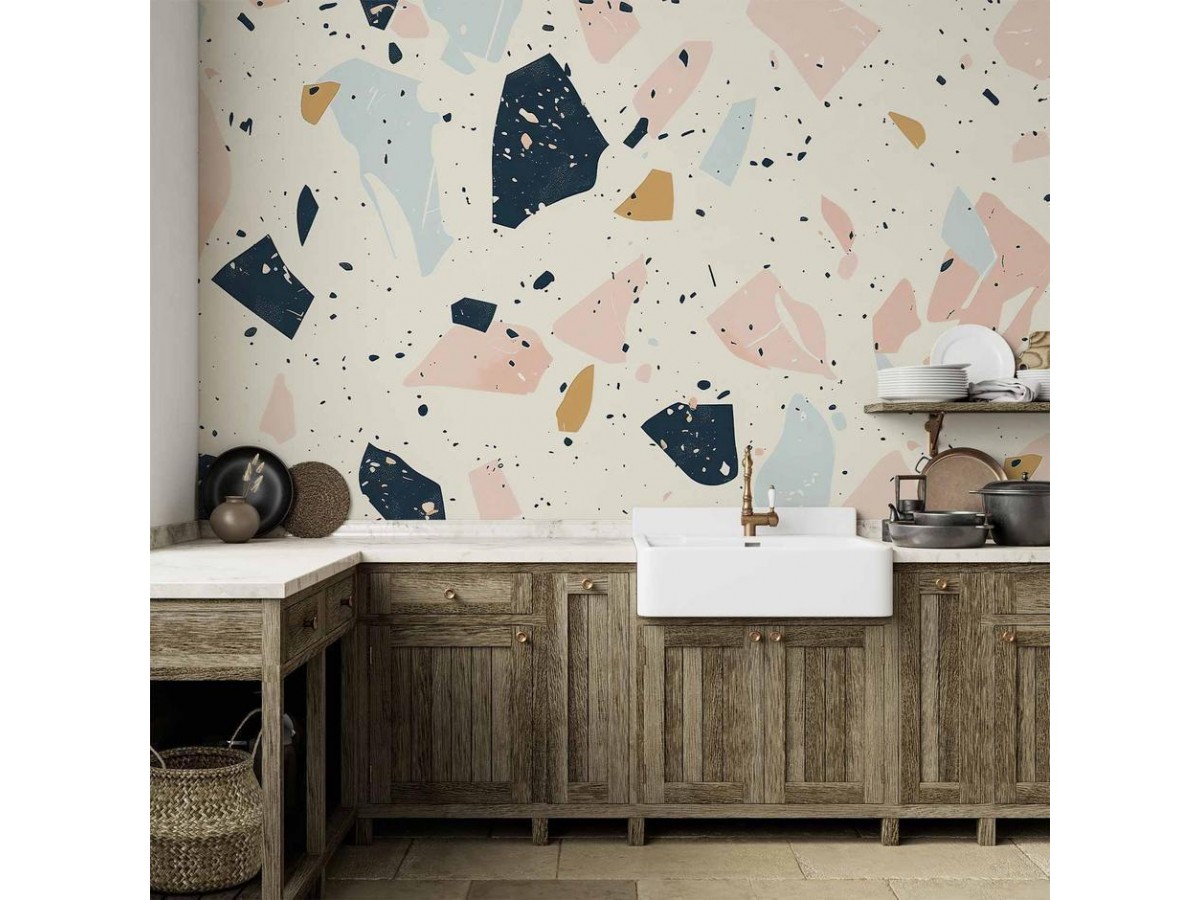 Papier peint - Terrazzo with Large Scaled Stones in Subdued Colors