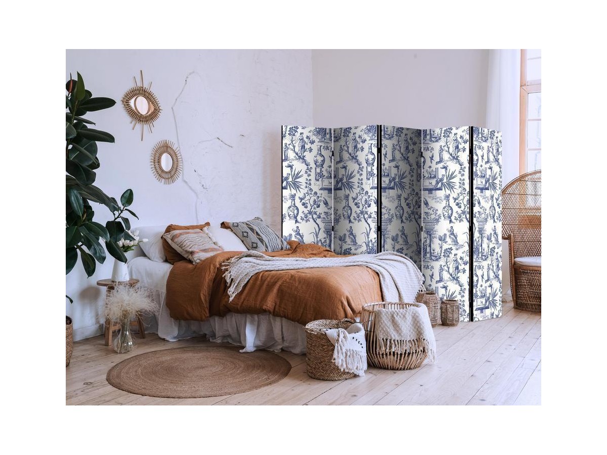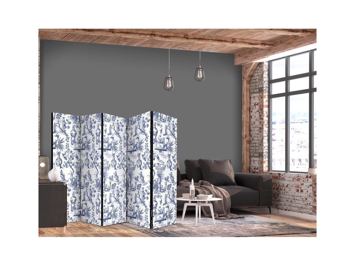 Les paravents décoratifs sont certainement une idée originale dans le domaine de la décoration intérieure. Les paravents remplissent un rôle décoratif, mais aussi bien pratique et fonctionnel. En effet, un paravent intérieur "Paravent - Rome and Botany - Blue Pattern with a Greek and Plant Motif" est un meuble formant une cloison amovible et repliable qui peut servir pour délimiter un espace et diviser une grande pièce en deux espaces séparés. Le paravent intérieur est une invention qui est apparue pour la première fois en Chine. Depuis le début de leur existence, les paravents remplissaient des différentes fonctions, comme protéger contre les courants d'air ou bien encore créer un espace isolé pour l'intimité. De nos jours, le paravent intérieur est une belle décoration intérieure, qui permet aussi de gérer l'espace d’une ou de plusieurs pièces selon notre volonté. Le paravent intérieur est également utilisé dans les locaux de service, comme un coiffeur, un cabinet médical ou un bureau comptable pour créer un espace propice à l’intimité ou bien encore à la concentration.