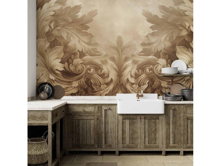 Papier peint - Carved Baroque Ornaments: Rich Composition in Sepia Colors