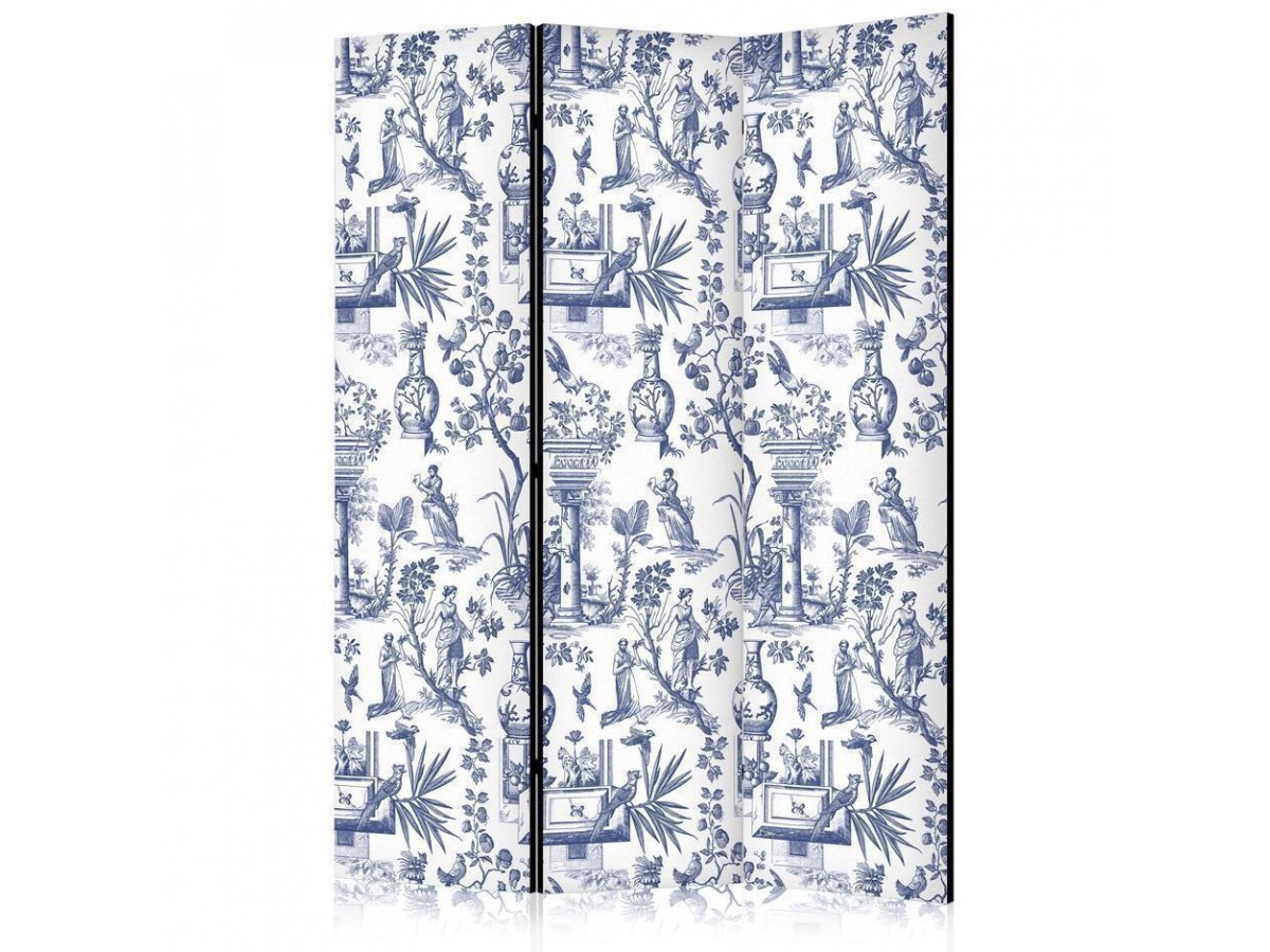 Un paravent décoratif "Paravent - Rome and Botany - Blue Pattern with a Greek and Plant Motif" est composé de panneaux orientables, appelés volets, en bois encadrés d'un châssis de bois et réunis par des charnières. Le paravent décoratif disponible dans notre offre se compose de trois ou de cinq parties. Tous les paravents que nous proposons ont une impression de haute qualité sur l’entoilage qui peut être une belle décoration d'intérieur. L'entoilage d’un paravent déco est tendu sur un cadre en bois solide et léger en même temps. Les panneaux sont finis avec un ruban de satin. Les charnières métalliques sont durables et très solides.Caractéristique technique