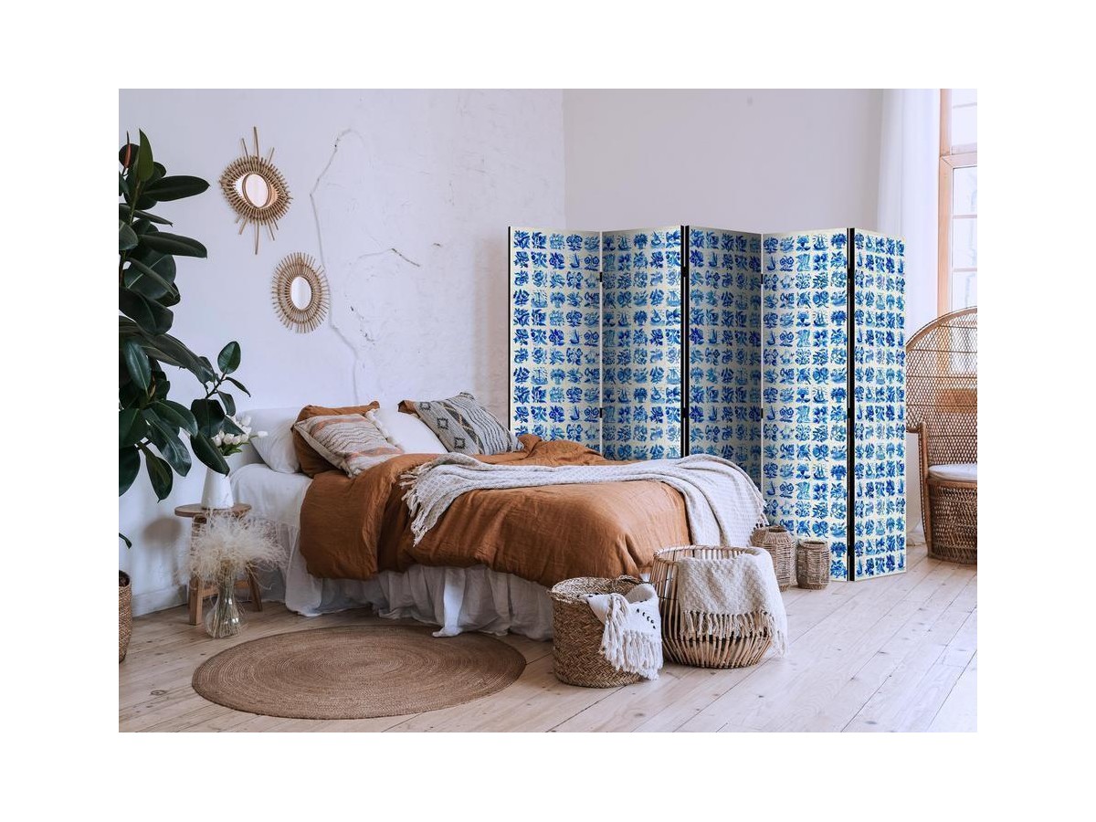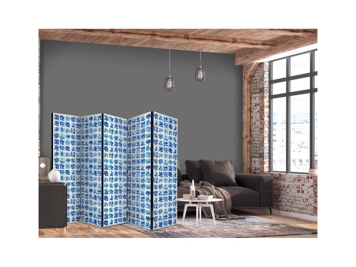 Un paravent décoratif "Paravent - Ceramic Tiles - Traditional Portuguese Blue Tiles Azulejos" est composé de panneaux orientables, appelés volets, en bois encadrés d'un châssis de bois et réunis par des charnières. Le paravent décoratif disponible dans notre offre se compose de trois ou de cinq parties. Tous les paravents que nous proposons ont une impression de haute qualité sur l’entoilage qui peut être une belle décoration d'intérieur. L'entoilage d’un paravent déco est tendu sur un cadre en bois solide et léger en même temps. Les panneaux sont finis avec un ruban de satin. Les charnières métalliques sont durables et très solides.Caractéristique technique