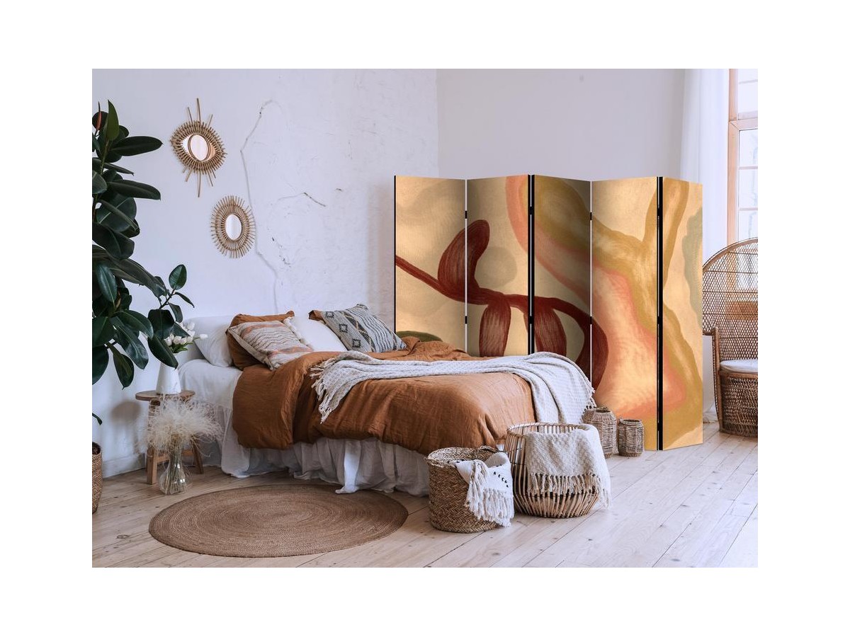 Les paravents décoratifs sont certainement une idée originale dans le domaine de la décoration intérieure. Les paravents remplissent un rôle décoratif, mais aussi bien pratique et fonctionnel. En effet, un paravent intérieur "Paravent - Worn Figures - Shapes in Lime Wash Technique in Warm Colors" est un meuble formant une cloison amovible et repliable qui peut servir pour délimiter un espace et diviser une grande pièce en deux espaces séparés. Le paravent intérieur est une invention qui est apparue pour la première fois en Chine. Depuis le début de leur existence, les paravents remplissaient des différentes fonctions, comme protéger contre les courants d'air ou bien encore créer un espace isolé pour l'intimité. De nos jours, le paravent intérieur est une belle décoration intérieure, qui permet aussi de gérer l'espace d’une ou de plusieurs pièces selon notre volonté. Le paravent intérieur est également utilisé dans les locaux de service, comme un coiffeur, un cabinet médical ou un bureau comptable pour créer un espace propice à l’intimité ou bien encore à la concentration.