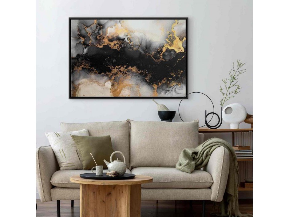 Les tableaux disponibles dans notre offre sont créés à l’aide de l'impression numérique sur toile de la plus haute qualité pour embellir votre intérieur. L’impression numérique sur toile sous la forme d’un tableau unit la tradition de la peinture sur toile avec la technologie moderne. Un effet final de ce mariage est le tableau moderne "Tableau - Golden explosions – abstract pattern inspired by marble" qui peut s’accorder parfaitement avec le style de votre pièce. Les tableaux complètent la décoration de chaque intérieur et lui donnent du caractère. La décoration murale sous la forme des tableaux constitue la dernière touche dans la décoration d’intérieur. Les tableaux déco complètent la décoration de chaque espace et la rendent plus accueillante. Souvent, ils constituent une touche personnelle dans l’intérieur, en reflétant la personnalité et le goût des habitants. Les tableaux déco que nous vous proposons dans notre offre sont des impressions numériques de la plus haute qualité réalisées sur toile. Cette technique de réalisation permet d’obtenir une image possédant une richesse de détails dont les couleurs sont vives et très fraîches. Un tableau moderne s’accorde parfaitement à des intérieurs aménagés dans le style moderne, mais aussi dans le style minimaliste et dans le style zen.