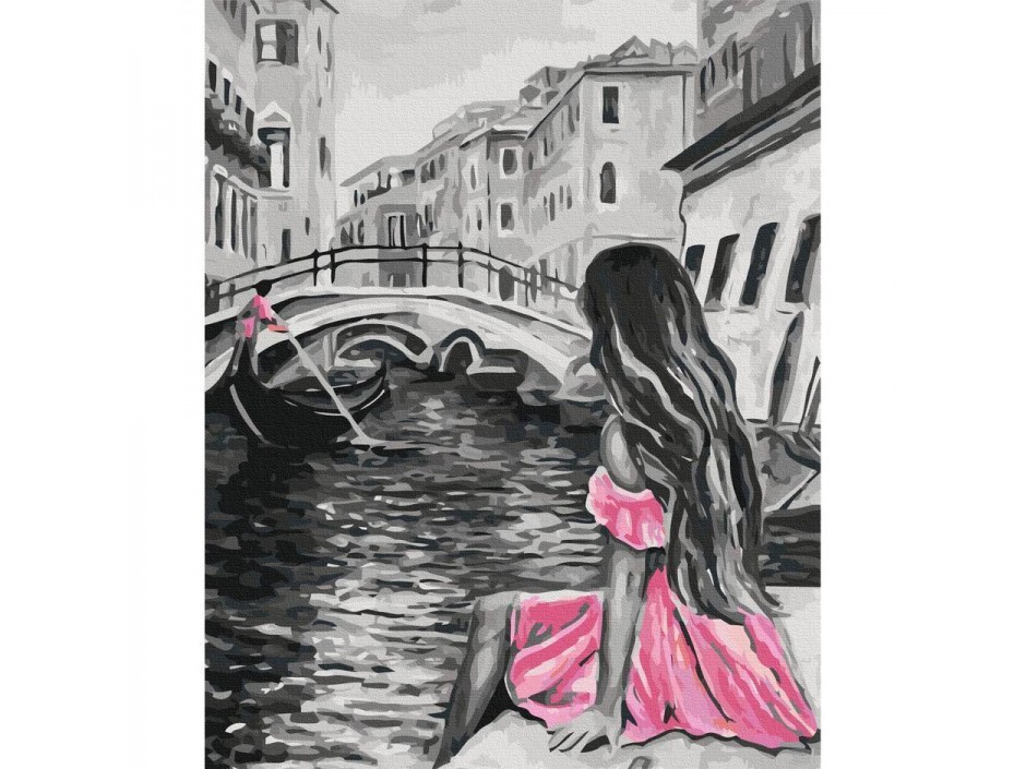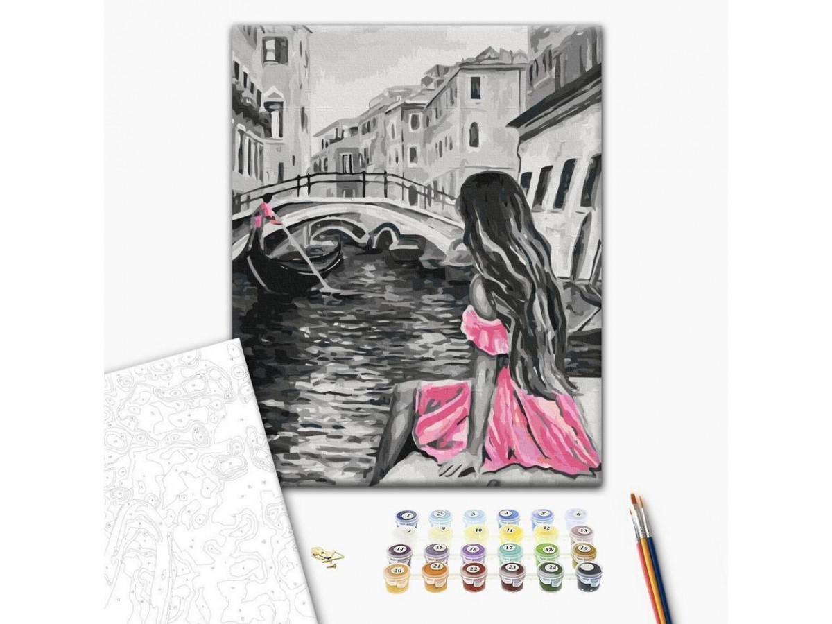 Tableau à peindre par soi-même - Venise (fille habilliée d'une robe rose)