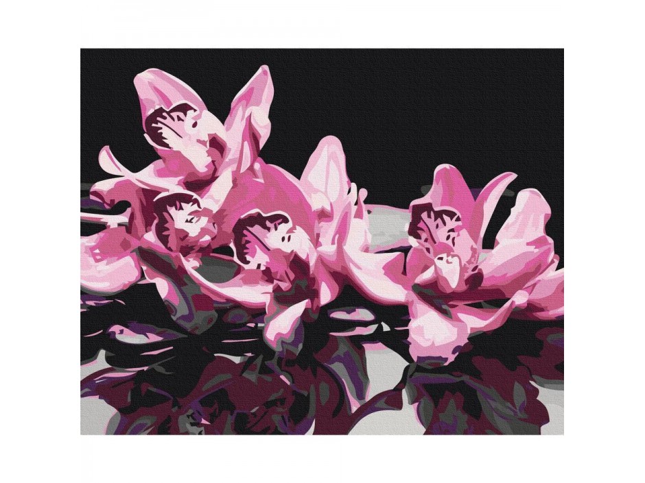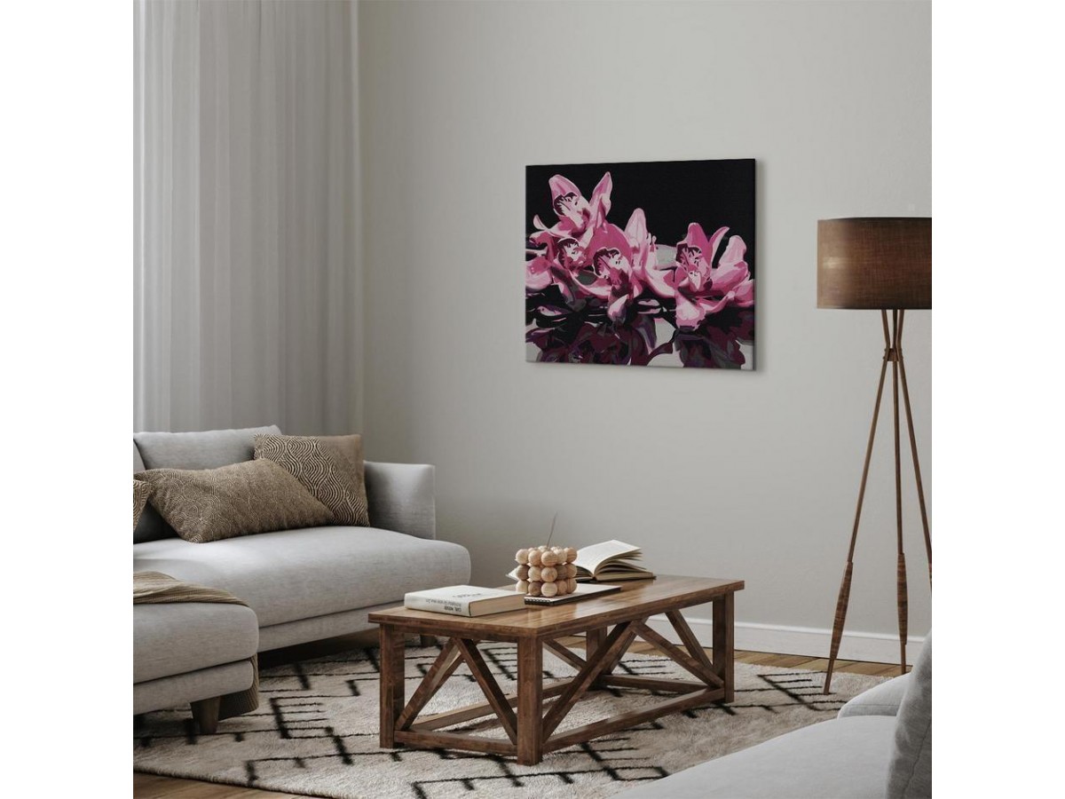 Tableau à peindre par soi-même - Orchidée rose (fond noir)
