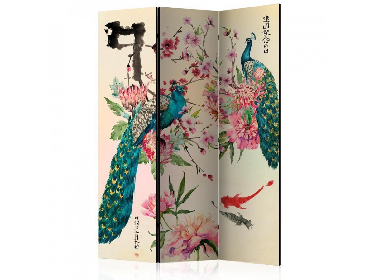 Paravent intérieur "Paravent - Peacock Love"Les paravents décoratifs sont certainement une idée originale dans le domaine de la décoration intérieure. Les paravents remplissent un rôle décoratif, mais aussi bien pratique et...