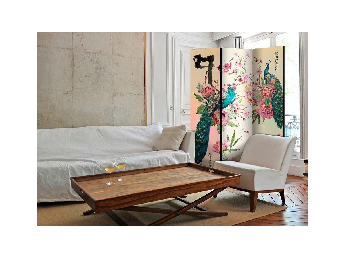 Les paravents décoratifs sont certainement une idée originale dans le domaine de la décoration intérieure. Les paravents remplissent un rôle décoratif, mais aussi bien pratique et fonctionnel. En effet, un paravent intérieur "Paravent - Peacock Love" est un meuble formant une cloison amovible et repliable qui peut servir pour délimiter un espace et diviser une grande pièce en deux espaces séparés. Le paravent intérieur est une invention qui est apparue pour la première fois en Chine. Depuis le début de leur existence, les paravents remplissaient des différentes fonctions, comme protéger contre les courants d'air ou bien encore créer un espace isolé pour l'intimité. De nos jours, le paravent intérieur est une belle décoration intérieure, qui permet aussi de gérer l'espace d’une ou de plusieurs pièces selon notre volonté. Le paravent intérieur est également utilisé dans les locaux de service, comme un coiffeur, un cabinet médical ou un bureau comptable pour créer un espace propice à l’intimité ou bien encore à la concentration.
