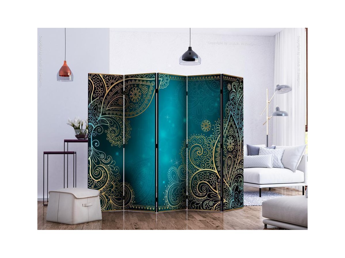 Un paravent décoratif "Paravent - Oriental wings II" est composé de panneaux orientables, appelés volets, en bois encadrés d'un châssis de bois et réunis par des charnières. Le paravent décoratif disponible dans notre offre se compose de trois ou de cinq parties. Tous les paravents que nous proposons ont une impression de haute qualité sur l’entoilage qui peut être une belle décoration d'intérieur. L'entoilage d’un paravent déco est tendu sur un cadre en bois solide et léger en même temps. Les panneaux sont finis avec un ruban de satin. Les charnières métalliques sont durables et très solides.Caractéristique technique