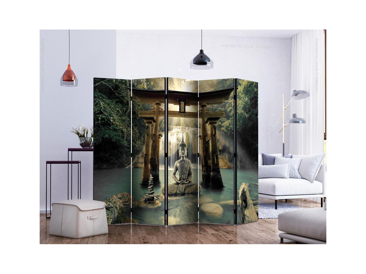 Les paravents décoratifs sont certainement une idée originale dans le domaine de la décoration intérieure. Les paravents remplissent un rôle décoratif, mais aussi bien pratique et fonctionnel. En effet, un paravent intérieur "Paravent - Buddha Smile II" est un meuble formant une cloison amovible et repliable qui peut servir pour délimiter un espace et diviser une grande pièce en deux espaces séparés. Le paravent intérieur est une invention qui est apparue pour la première fois en Chine. Depuis le début de leur existence, les paravents remplissaient des différentes fonctions, comme protéger contre les courants d'air ou bien encore créer un espace isolé pour l'intimité. De nos jours, le paravent intérieur est une belle décoration intérieure, qui permet aussi de gérer l'espace d’une ou de plusieurs pièces selon notre volonté. Le paravent intérieur est également utilisé dans les locaux de service, comme un coiffeur, un cabinet médical ou un bureau comptable pour créer un espace propice à l’intimité ou bien encore à la concentration.