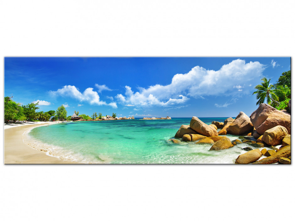 Tableau réalisé sur le verre acrylique "Panoramique Seychelles" est une excellente idée pour la décoration des intérieurs modernes. L’impression sur verre acrylique attire l'oeil grâce à l’effet de profondeur, et sera sublimer les salles de réceptions. Grâce à l’utilisation de nouvelles technologies d’impression, le tableau est doté d’une extrême brillance. Les tableaux sur plexiglas sont légers, faciles à nettoyer, et résistant à l’humidité. Ainsi le tableau fait ses preuves dans tous les intérieurs, aussi bien dans un salon, que dans une chambre, ou une salle de bain et même en terrasse. Grâce à la transparence du verre acrylique, la lumière le transperce et lui fait gagné un effet 3D.
