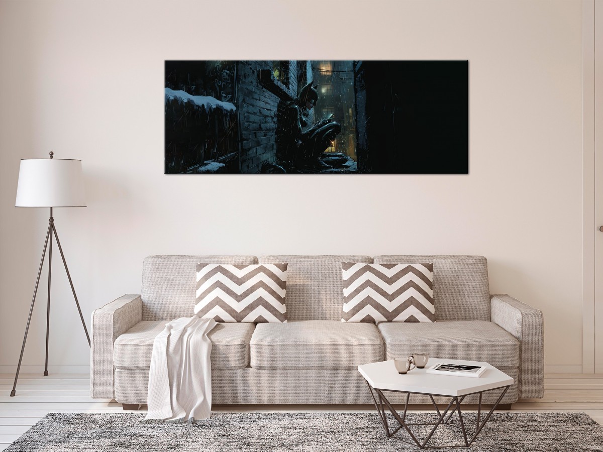 Des matériaux de haute qualité Le tableau ""Féline nocturne sous la pluie"" est imprimé sur un papier intissé spécial qui reflète parfaitement les couleurs. La toile est tendue sur un châssis léger mais stable, fait des matériaux respectueux de l’environnement. Décoration de première qualité assurée par une impression de haute gamme, grâce à laquelle des couleurs sont intenses et des détails sont parfaitement reproduits, indépendamment de la taille du tableau.
