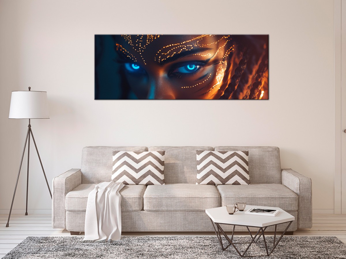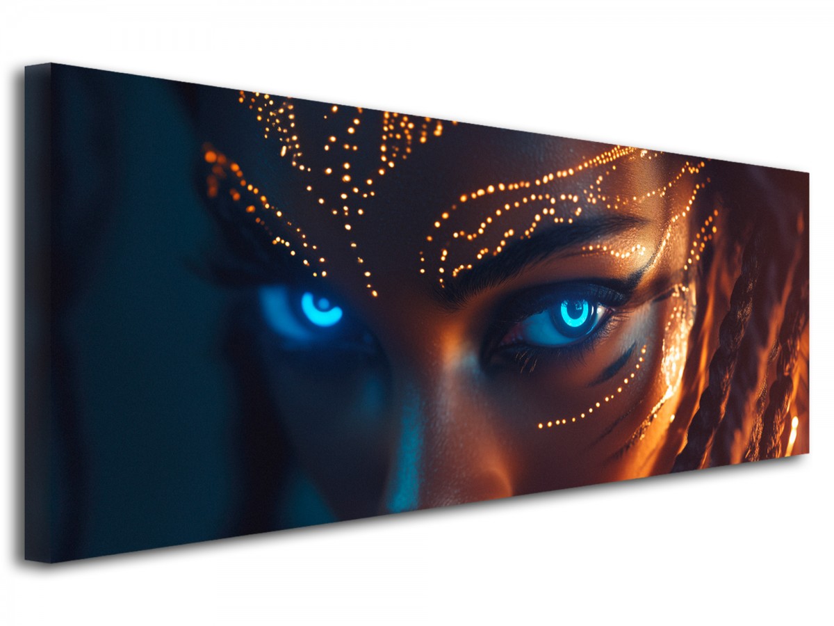 Le tableau ""Regard luminescent bleu"" de très haute qualité est le fruit du travail d’une équipe de designers très talentueux parmi lesquels se trouvent de jeunes artistes, graphistes et photographes avec les têtes pleines d’idées. Le tableau qui vous a intéressé est une combinaison d’une impression de la plus haute qualité, d’un travail manuel soigné et des meilleurs matériaux.