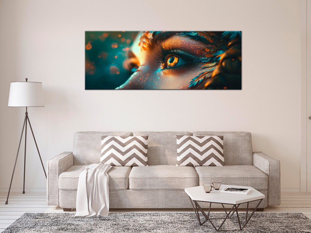 Des matériaux de haute qualité Le tableau ""Regard doré féérique"" est imprimé sur un papier intissé spécial qui reflète parfaitement les couleurs. La toile est tendue sur un châssis léger mais stable, fait des matériaux respectueux de l’environnement. Décoration de première qualité assurée par une impression de haute gamme, grâce à laquelle des couleurs sont intenses et des détails sont parfaitement reproduits, indépendamment de la taille du tableau.