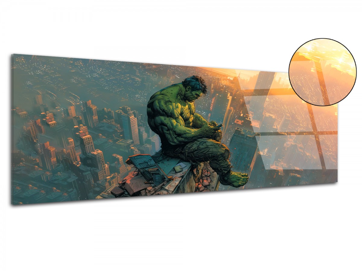 Tableau Plexiglas Colosse émeraude sur la ville
