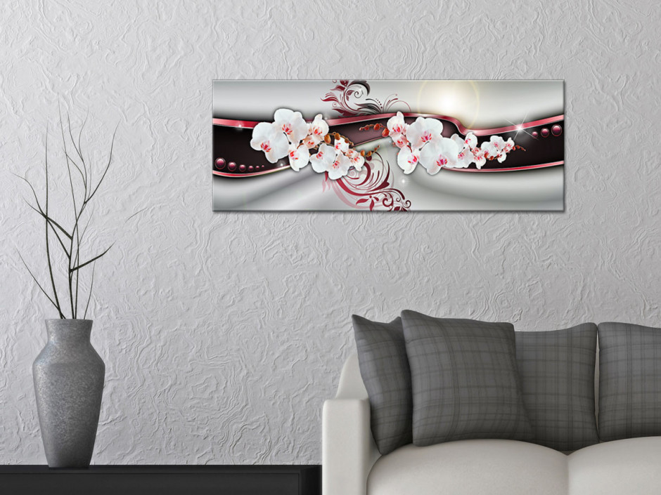Toute l'élégance de l'orchidée et la modernité de l'art abstrait sont associés au travers de ce sublime tableau sur toile. Au format panoramique de 80x30 cm, ce cadre mural aux lignes et fleurs colorées, colorera avec charme les murs de votre salon ou de votre chambre. Plongez dans l'univers de l'art abstrait avec notre collection de tableaux design imprimés sur toile à prix bas.