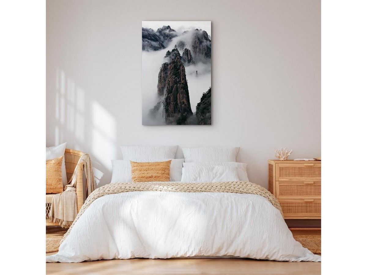 Les tableaux disponibles dans notre offre sont créés à l’aide de l'impression numérique sur toile de la plus haute qualité pour embellir votre intérieur. L’impression numérique sur toile sous la forme d’un tableau unit la tradition de la peinture sur toile avec la technologie moderne. Un effet final de ce mariage est le tableau moderne "Tableau - High Mountains in Mist (1-part) - Landscape of Clouds Amid Rocks" qui peut s’accorder parfaitement avec le style de votre pièce. Les tableaux complètent la décoration de chaque intérieur et lui donnent du caractère. La décoration murale sous la forme des tableaux constitue la dernière touche dans la décoration d’intérieur. Les tableaux déco complètent la décoration de chaque espace et la rendent plus accueillante. Souvent, ils constituent une touche personnelle dans l’intérieur, en reflétant la personnalité et le goût des habitants. Les tableaux déco que nous vous proposons dans notre offre sont des impressions numériques de la plus haute qualité réalisées sur toile. Cette technique de réalisation permet d’obtenir une image possédant une richesse de détails dont les couleurs sont vives et très fraîches. Un tableau moderne s’accorde parfaitement à des intérieurs aménagés dans le style moderne, mais aussi dans le style minimaliste et dans le style zen.