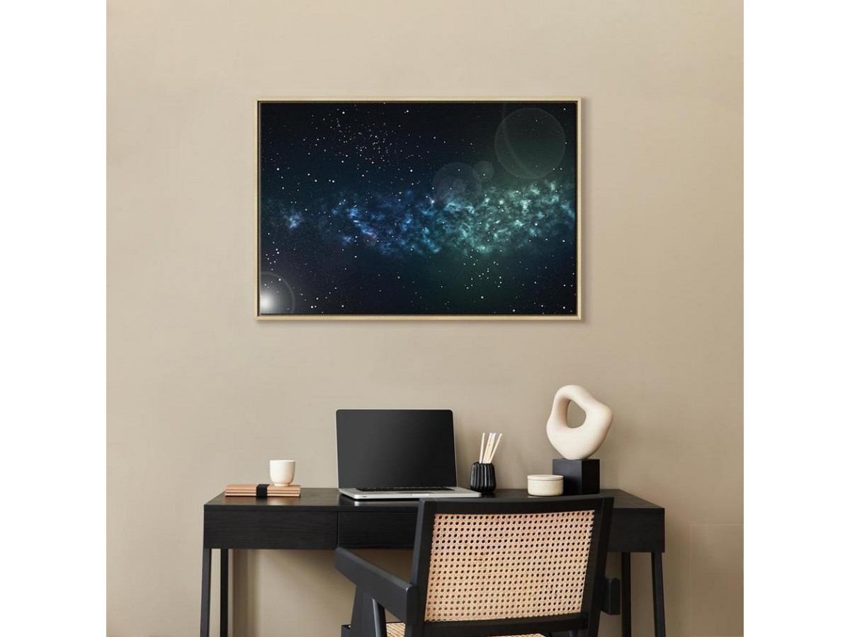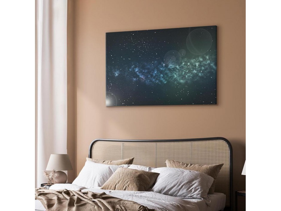 Les tableaux disponibles dans notre offre sont créés à l’aide de l'impression numérique sur toile de la plus haute qualité pour embellir votre intérieur. L’impression numérique sur toile sous la forme d’un tableau unit la tradition de la peinture sur toile avec la technologie moderne. Un effet final de ce mariage est le tableau moderne "Tableau - Space (1 Part) Wide" qui peut s’accorder parfaitement avec le style de votre pièce. Les tableaux complètent la décoration de chaque intérieur et lui donnent du caractère. La décoration murale sous la forme des tableaux constitue la dernière touche dans la décoration d’intérieur. Les tableaux déco complètent la décoration de chaque espace et la rendent plus accueillante. Souvent, ils constituent une touche personnelle dans l’intérieur, en reflétant la personnalité et le goût des habitants. Les tableaux déco que nous vous proposons dans notre offre sont des impressions numériques de la plus haute qualité réalisées sur toile. Cette technique de réalisation permet d’obtenir une image possédant une richesse de détails dont les couleurs sont vives et très fraîches. Un tableau moderne s’accorde parfaitement à des intérieurs aménagés dans le style moderne, mais aussi dans le style minimaliste et dans le style zen.