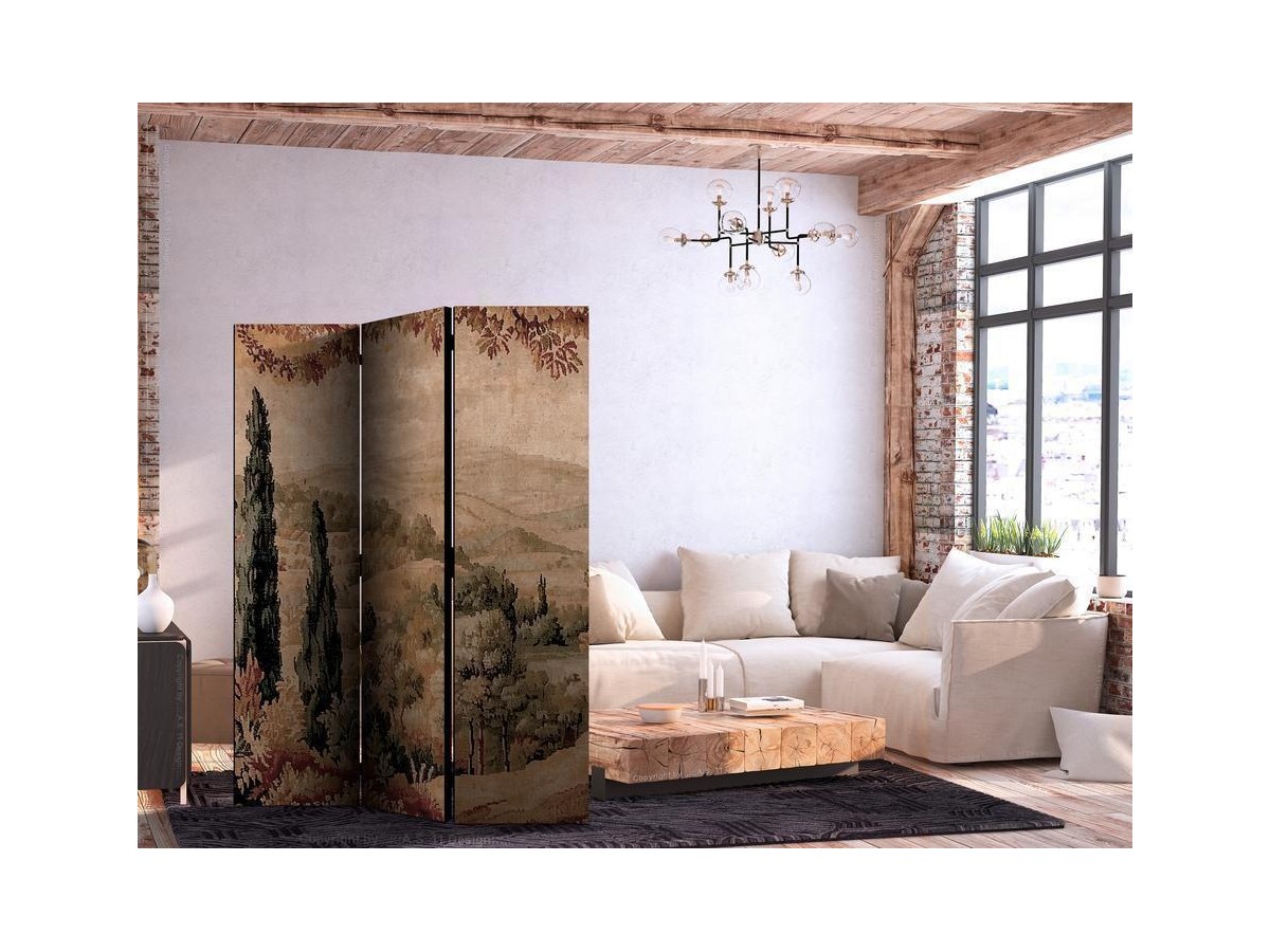 Les paravents décoratifs sont certainement une idée originale dans le domaine de la décoration intérieure. Les paravents remplissent un rôle décoratif, mais aussi bien pratique et fonctionnel. En effet, un paravent intérieur "Paravent - Landscape with Cypresses - Old Tapestry with Mediterranean Vegetation" est un meuble formant une cloison amovible et repliable qui peut servir pour délimiter un espace et diviser une grande pièce en deux espaces séparés. Le paravent intérieur est une invention qui est apparue pour la première fois en Chine. Depuis le début de leur existence, les paravents remplissaient des différentes fonctions, comme protéger contre les courants d'air ou bien encore créer un espace isolé pour l'intimité. De nos jours, le paravent intérieur est une belle décoration intérieure, qui permet aussi de gérer l'espace d’une ou de plusieurs pièces selon notre volonté. Le paravent intérieur est également utilisé dans les locaux de service, comme un coiffeur, un cabinet médical ou un bureau comptable pour créer un espace propice à l’intimité ou bien encore à la concentration.