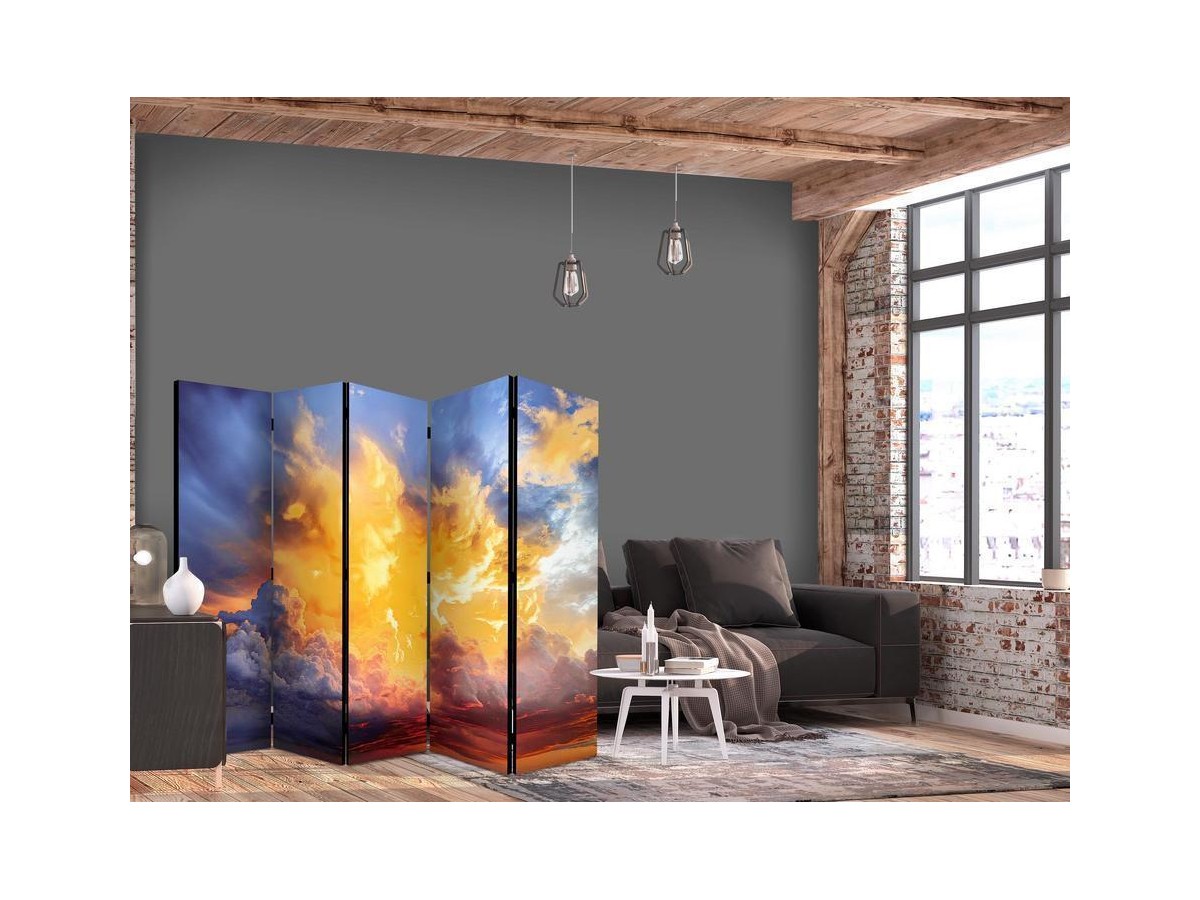 Les paravents décoratifs sont certainement une idée originale dans le domaine de la décoration intérieure. Les paravents remplissent un rôle décoratif, mais aussi bien pratique et fonctionnel. En effet, un paravent intérieur "Paravent - Beautiful Sunset - Clouds in Warm Tones" est un meuble formant une cloison amovible et repliable qui peut servir pour délimiter un espace et diviser une grande pièce en deux espaces séparés. Le paravent intérieur est une invention qui est apparue pour la première fois en Chine. Depuis le début de leur existence, les paravents remplissaient des différentes fonctions, comme protéger contre les courants d'air ou bien encore créer un espace isolé pour l'intimité. De nos jours, le paravent intérieur est une belle décoration intérieure, qui permet aussi de gérer l'espace d’une ou de plusieurs pièces selon notre volonté. Le paravent intérieur est également utilisé dans les locaux de service, comme un coiffeur, un cabinet médical ou un bureau comptable pour créer un espace propice à l’intimité ou bien encore à la concentration.
