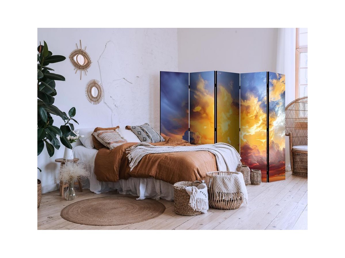 Un paravent décoratif "Paravent - Beautiful Sunset - Clouds in Warm Tones" est composé de panneaux orientables, appelés volets, en bois encadrés d'un châssis de bois et réunis par des charnières. Le paravent décoratif disponible dans notre offre se compose de trois ou de cinq parties. Tous les paravents que nous proposons ont une impression de haute qualité sur l’entoilage qui peut être une belle décoration d'intérieur. L'entoilage d’un paravent déco est tendu sur un cadre en bois solide et léger en même temps. Les panneaux sont finis avec un ruban de satin. Les charnières métalliques sont durables et très solides.Caractéristique technique