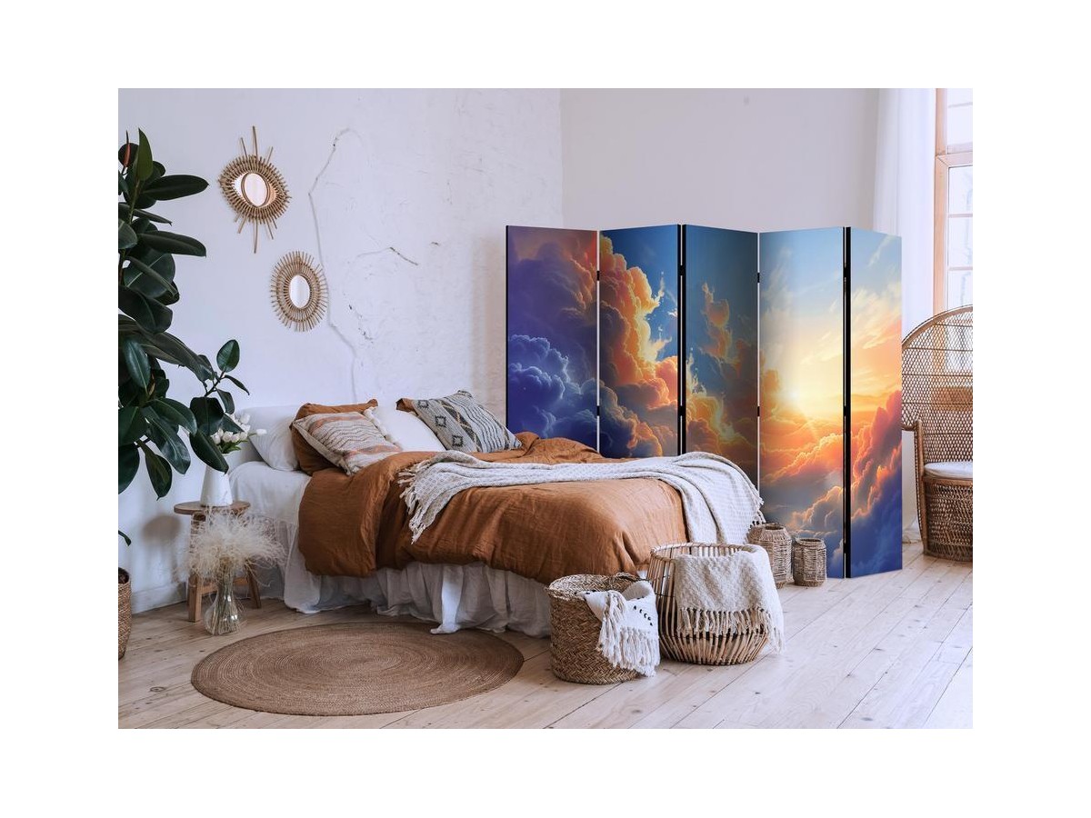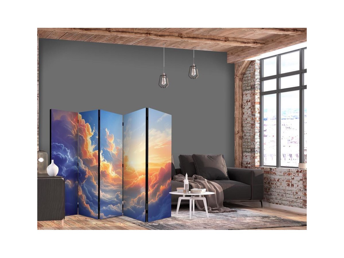 Les paravents décoratifs sont certainement une idée originale dans le domaine de la décoration intérieure. Les paravents remplissent un rôle décoratif, mais aussi bien pratique et fonctionnel. En effet, un paravent intérieur "Paravent - Sunset Over a Cloudy Sea: A Marvelous Symphony of Colors" est un meuble formant une cloison amovible et repliable qui peut servir pour délimiter un espace et diviser une grande pièce en deux espaces séparés. Le paravent intérieur est une invention qui est apparue pour la première fois en Chine. Depuis le début de leur existence, les paravents remplissaient des différentes fonctions, comme protéger contre les courants d'air ou bien encore créer un espace isolé pour l'intimité. De nos jours, le paravent intérieur est une belle décoration intérieure, qui permet aussi de gérer l'espace d’une ou de plusieurs pièces selon notre volonté. Le paravent intérieur est également utilisé dans les locaux de service, comme un coiffeur, un cabinet médical ou un bureau comptable pour créer un espace propice à l’intimité ou bien encore à la concentration.