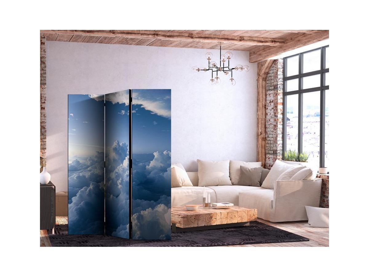 Paravent intérieur "Paravent - Aerial Landscapes: Rays Illuminating Fluffy Cloud Formations"Les paravents décoratifs sont certainement une idée originale dans le domaine de la décoration intérieure. Les paravents remplissent un rôle...