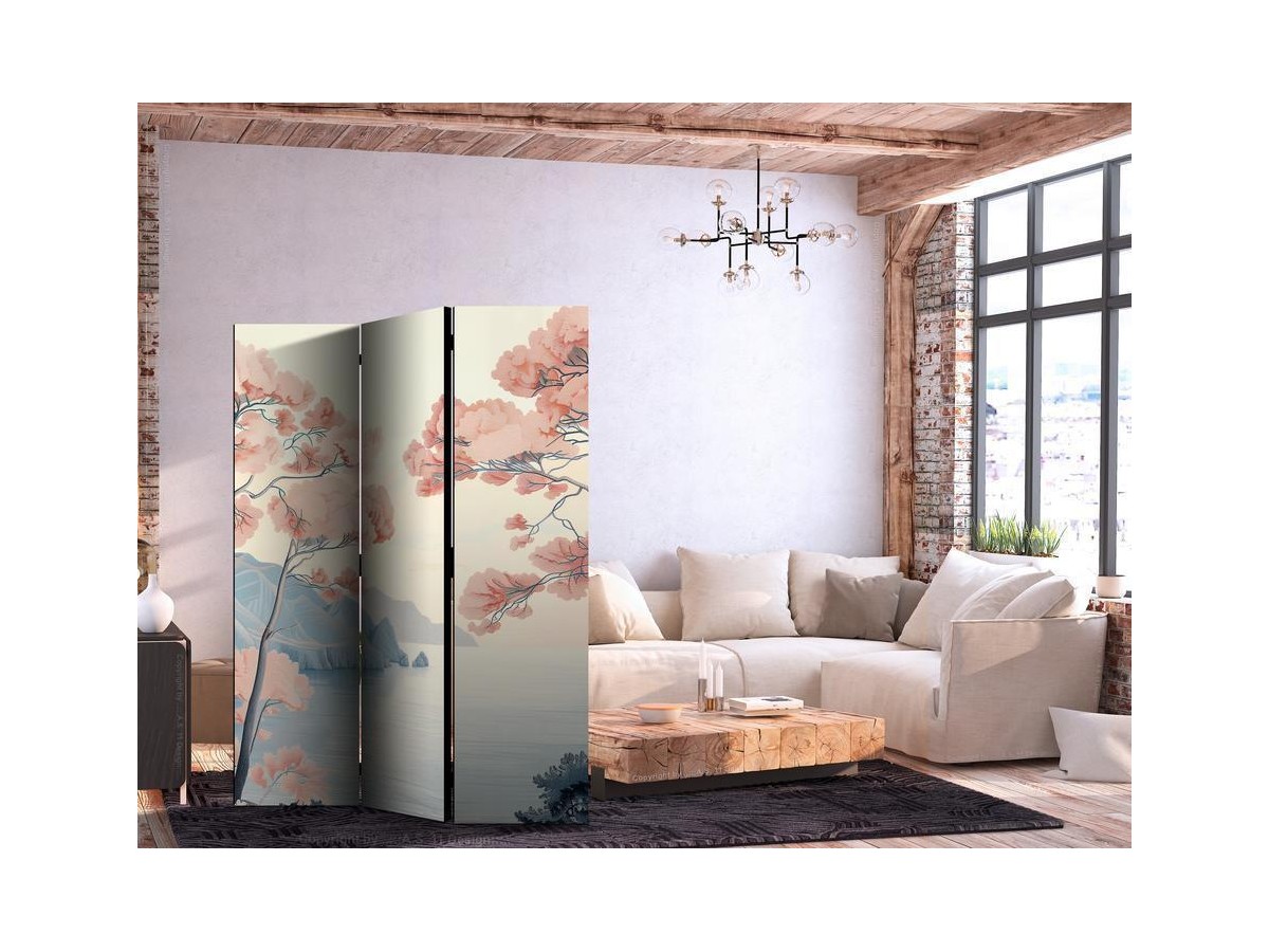Les paravents décoratifs sont certainement une idée originale dans le domaine de la décoration intérieure. Les paravents remplissent un rôle décoratif, mais aussi bien pratique et fonctionnel. En effet, un paravent intérieur "Paravent - Landscape with the Ocean - Cliffs - and Trees in Delicate Pink Shades" est un meuble formant une cloison amovible et repliable qui peut servir pour délimiter un espace et diviser une grande pièce en deux espaces séparés. Le paravent intérieur est une invention qui est apparue pour la première fois en Chine. Depuis le début de leur existence, les paravents remplissaient des différentes fonctions, comme protéger contre les courants d'air ou bien encore créer un espace isolé pour l'intimité. De nos jours, le paravent intérieur est une belle décoration intérieure, qui permet aussi de gérer l'espace d’une ou de plusieurs pièces selon notre volonté. Le paravent intérieur est également utilisé dans les locaux de service, comme un coiffeur, un cabinet médical ou un bureau comptable pour créer un espace propice à l’intimité ou bien encore à la concentration.
