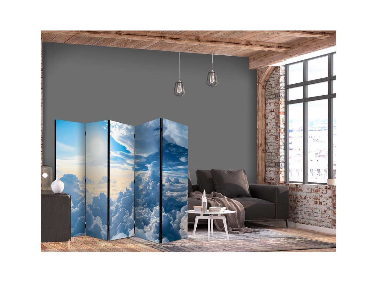 Les paravents décoratifs sont certainement une idée originale dans le domaine de la décoration intérieure. Les paravents remplissent un rôle décoratif, mais aussi bien pratique et fonctionnel. En effet, un paravent intérieur "Paravent - Symphony of Light: The Sun and Clouds Coordinating in a Beautiful Sky" est un meuble formant une cloison amovible et repliable qui peut servir pour délimiter un espace et diviser une grande pièce en deux espaces séparés. Le paravent intérieur est une invention qui est apparue pour la première fois en Chine. Depuis le début de leur existence, les paravents remplissaient des différentes fonctions, comme protéger contre les courants d'air ou bien encore créer un espace isolé pour l'intimité. De nos jours, le paravent intérieur est une belle décoration intérieure, qui permet aussi de gérer l'espace d’une ou de plusieurs pièces selon notre volonté. Le paravent intérieur est également utilisé dans les locaux de service, comme un coiffeur, un cabinet médical ou un bureau comptable pour créer un espace propice à l’intimité ou bien encore à la concentration.