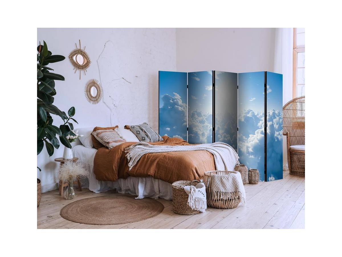 Un paravent décoratif "Paravent - Heavenly Calm: Warm Rays of the Sun" est composé de panneaux orientables, appelés volets, en bois encadrés d'un châssis de bois et réunis par des charnières. Le paravent décoratif disponible dans notre offre se compose de trois ou de cinq parties. Tous les paravents que nous proposons ont une impression de haute qualité sur l’entoilage qui peut être une belle décoration d'intérieur. L'entoilage d’un paravent déco est tendu sur un cadre en bois solide et léger en même temps. Les panneaux sont finis avec un ruban de satin. Les charnières métalliques sont durables et très solides.Caractéristique technique