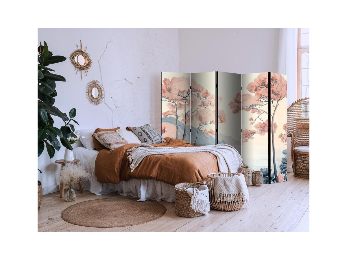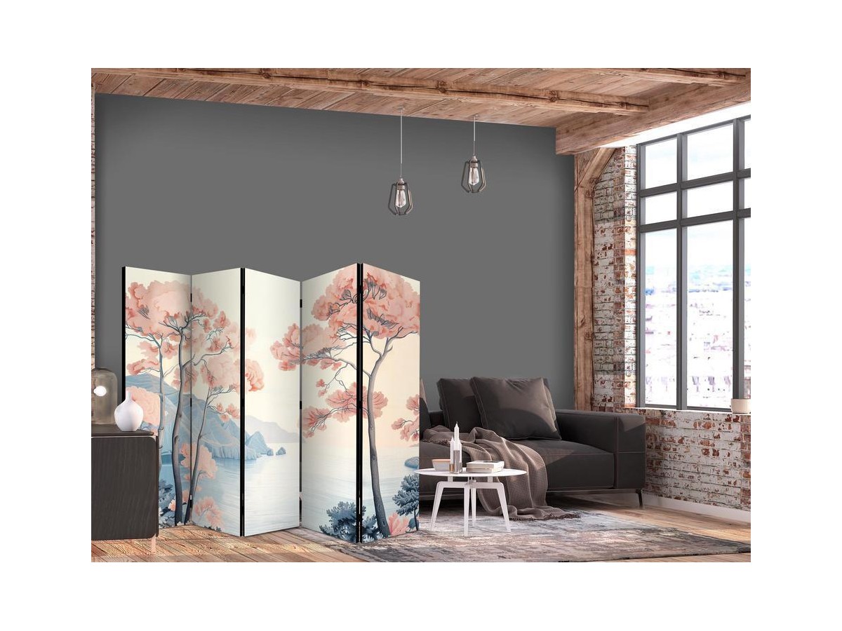 Paravent - Landscape with the Ocean - Cliffs - and Trees in Delicate Pink Shades