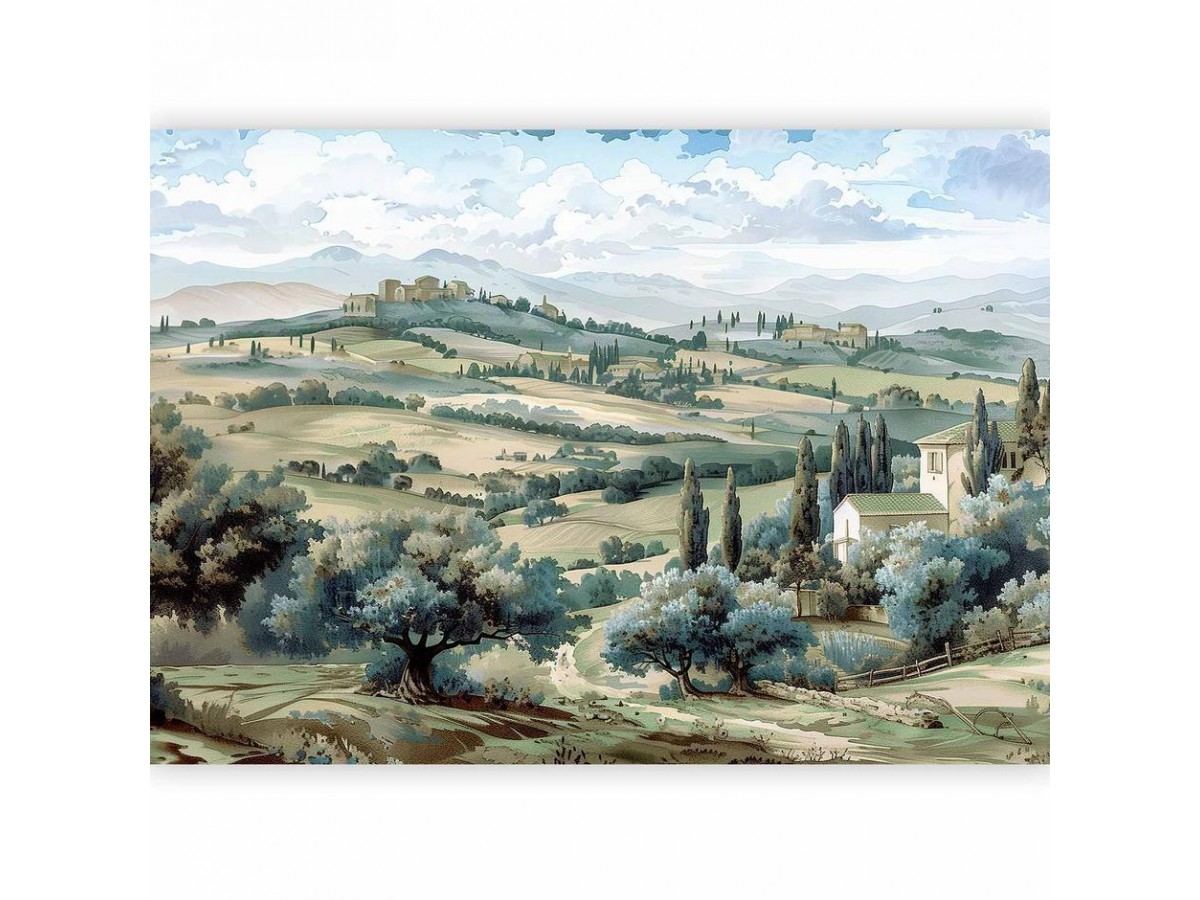 Papier peint - Landscape with Green Fields and Trees Tuscan Sunny View