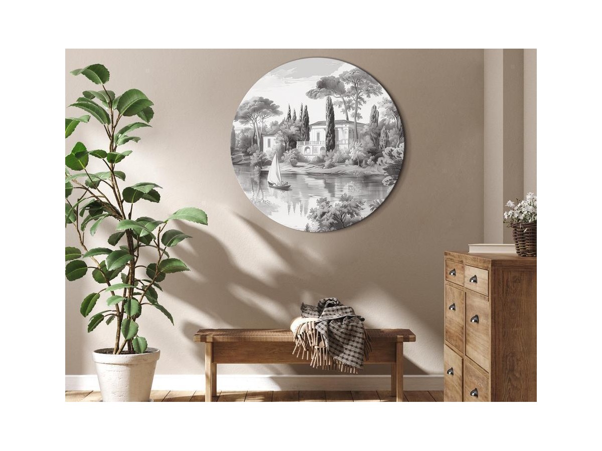 Si vous recherchez un compromis entre le support traditionnel de la toile italienne et une forme hors du commun et unique, les peintures murales rondes sont le choix parfait ! La toile italienne de la plus haute qualité garantit une excellente impression haute définition et une reproduction fidèle des détails. La protection UV signifie que le tableau rond "Tableau rond - Black and white vintage landscape with a pond" peut également être accroché dans des endroits exposés au soleil, sans se soucier de la durabilité des couleurs. La forme douce du cercle est le cadre parfait pour presque tous les motifs et le métier rond concentre encore plus l'attention sur le motif. Les tableaux ronds n'ont pas besoin d'un cadre supplémentaire et leurs côtés sont soigneusement finis. Chaque produit subit un contrôle qualité minutieux et est soigneusement protégé pendant le transport. Les tableaux ronds sont disponibles en plusieurs tailles, en fonction du diamètre du métier à tisser. Le tableau en cercle aura fière allure seule ou en compagnie d'autres peintures, créant une galerie murale extraordinaire, quelle que soit la pièce.