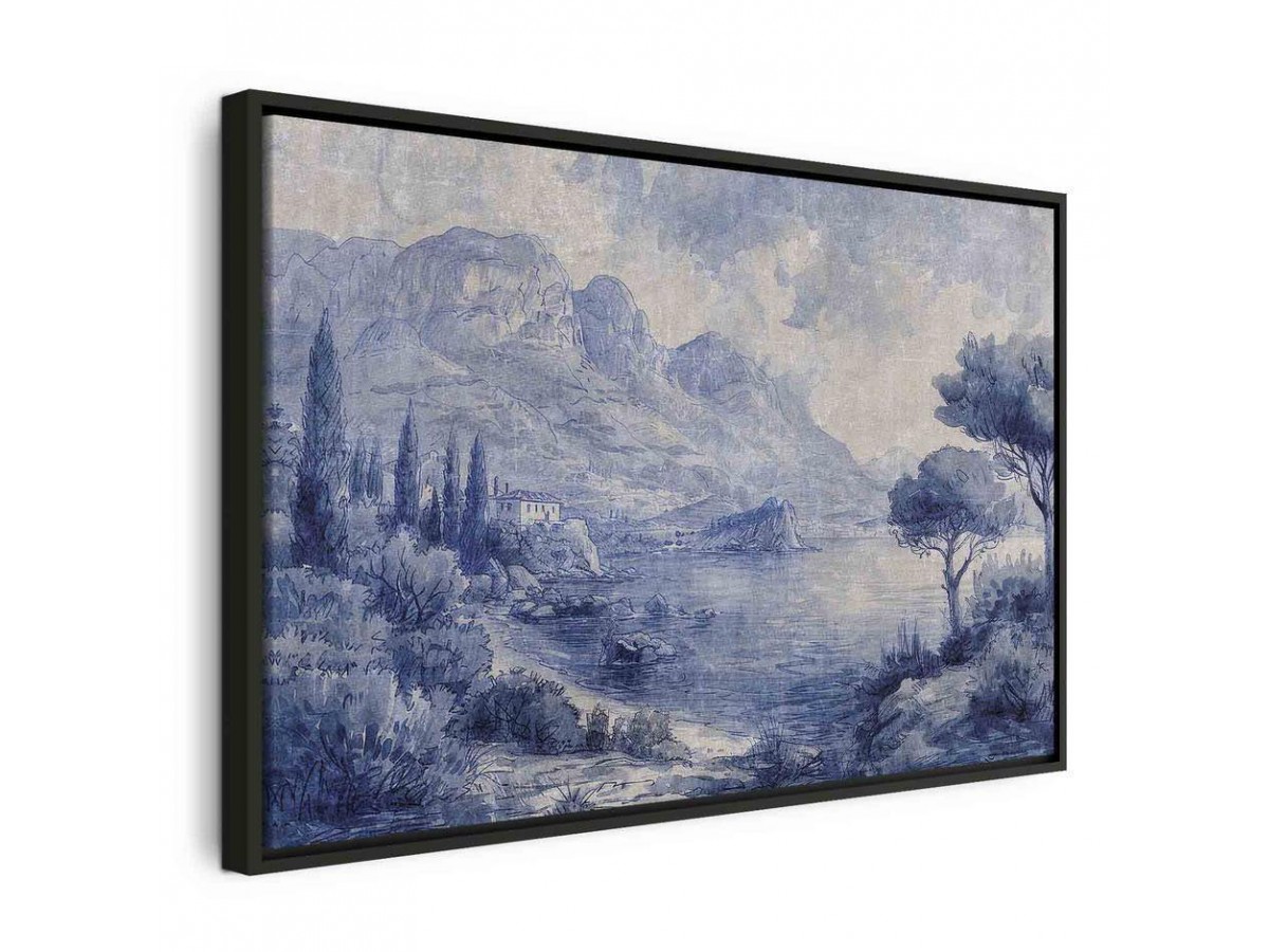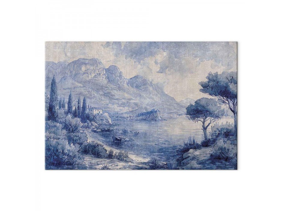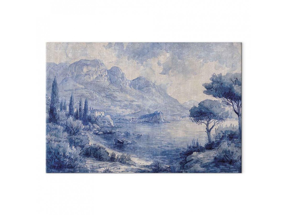 Tableau - Blue Bay - Italian landscape of Lake Como painted with blue ink