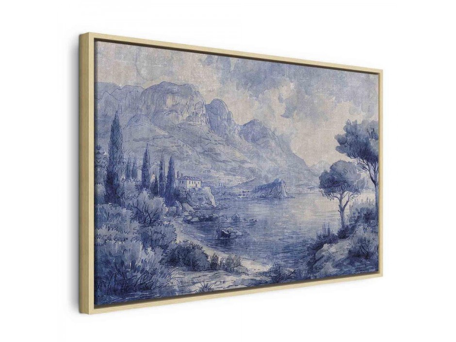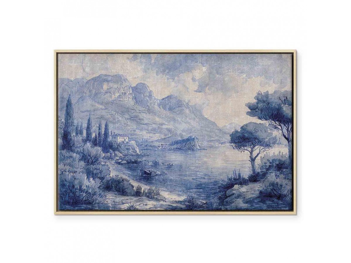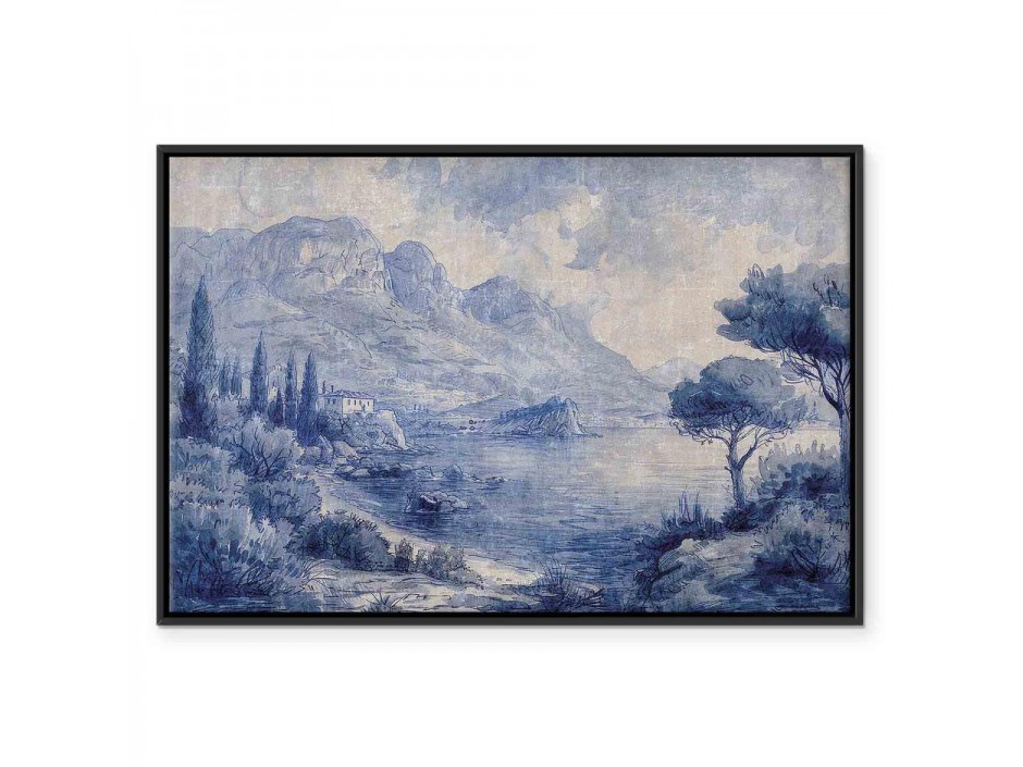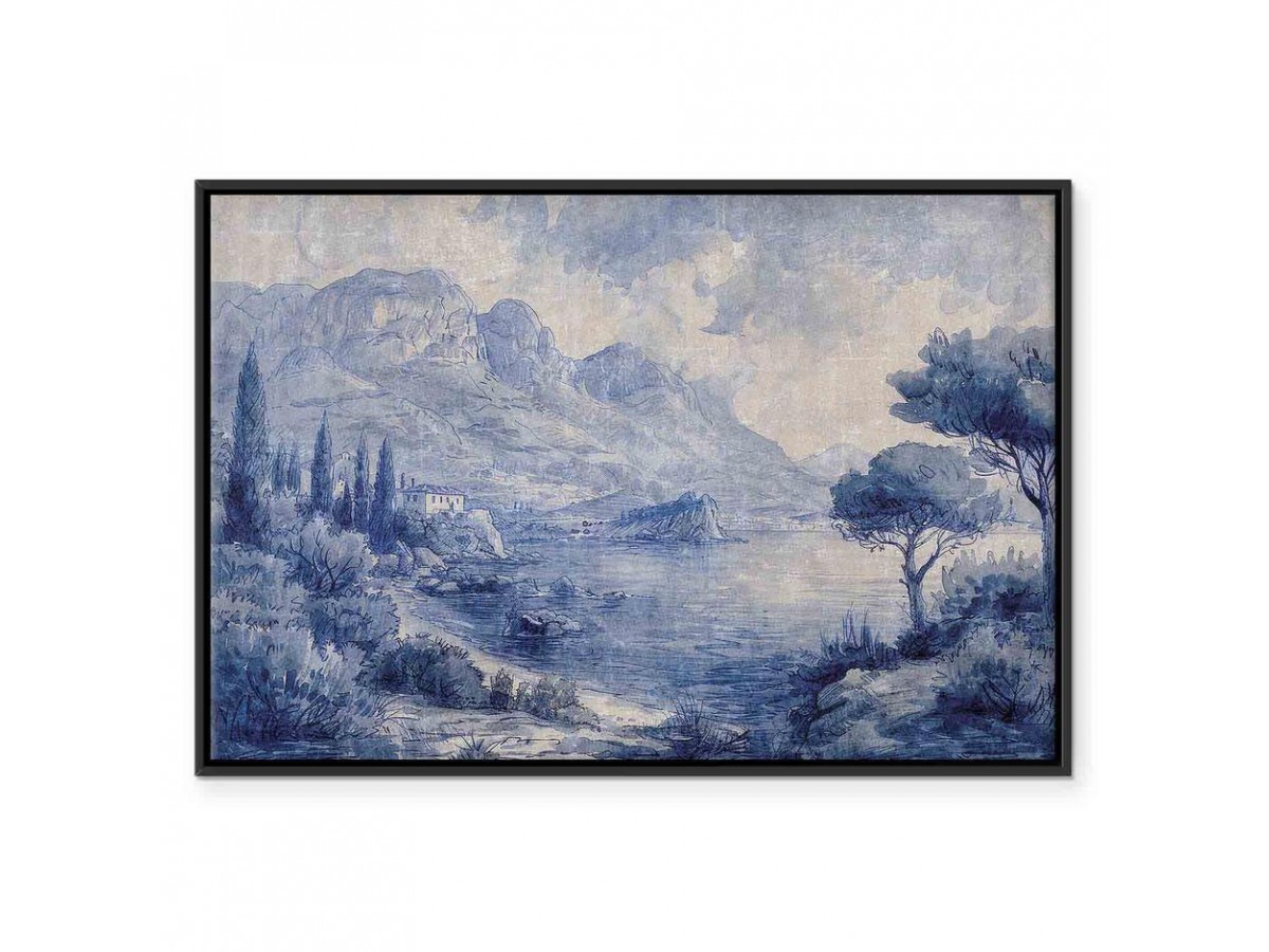 Tableau - Blue Bay - Italian landscape of Lake Como painted with blue ink