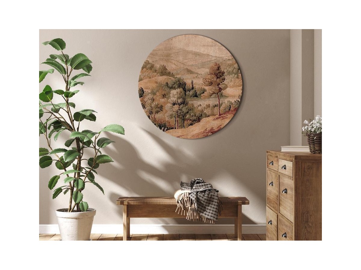 Tableaux ronds comme décoration hors du communLe tableau rond ? Pourquoi pas ! Hors du commun et se distinguant des autres produits sur le marché, le tableau rond "Tableau rond - Mediterranean landscape - old tapestry with a hill and a...