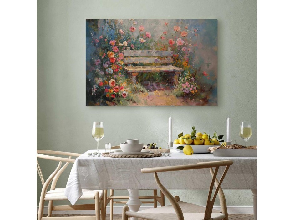 Les tableaux disponibles dans notre offre sont créés à l’aide de l'impression numérique sur toile de la plus haute qualité pour embellir votre intérieur. L’impression numérique sur toile sous la forme d’un tableau unit la tradition de la peinture sur toile avec la technologie moderne. Un effet final de ce mariage est le tableau moderne "Tableau - Flowery bench - impressionist painting full of flowers" qui peut s’accorder parfaitement avec le style de votre pièce. Les tableaux complètent la décoration de chaque intérieur et lui donnent du caractère. La décoration murale sous la forme des tableaux constitue la dernière touche dans la décoration d’intérieur. Les tableaux déco complètent la décoration de chaque espace et la rendent plus accueillante. Souvent, ils constituent une touche personnelle dans l’intérieur, en reflétant la personnalité et le goût des habitants. Les tableaux déco que nous vous proposons dans notre offre sont des impressions numériques de la plus haute qualité réalisées sur toile. Cette technique de réalisation permet d’obtenir une image possédant une richesse de détails dont les couleurs sont vives et très fraîches. Un tableau moderne s’accorde parfaitement à des intérieurs aménagés dans le style moderne, mais aussi dans le style minimaliste et dans le style zen.