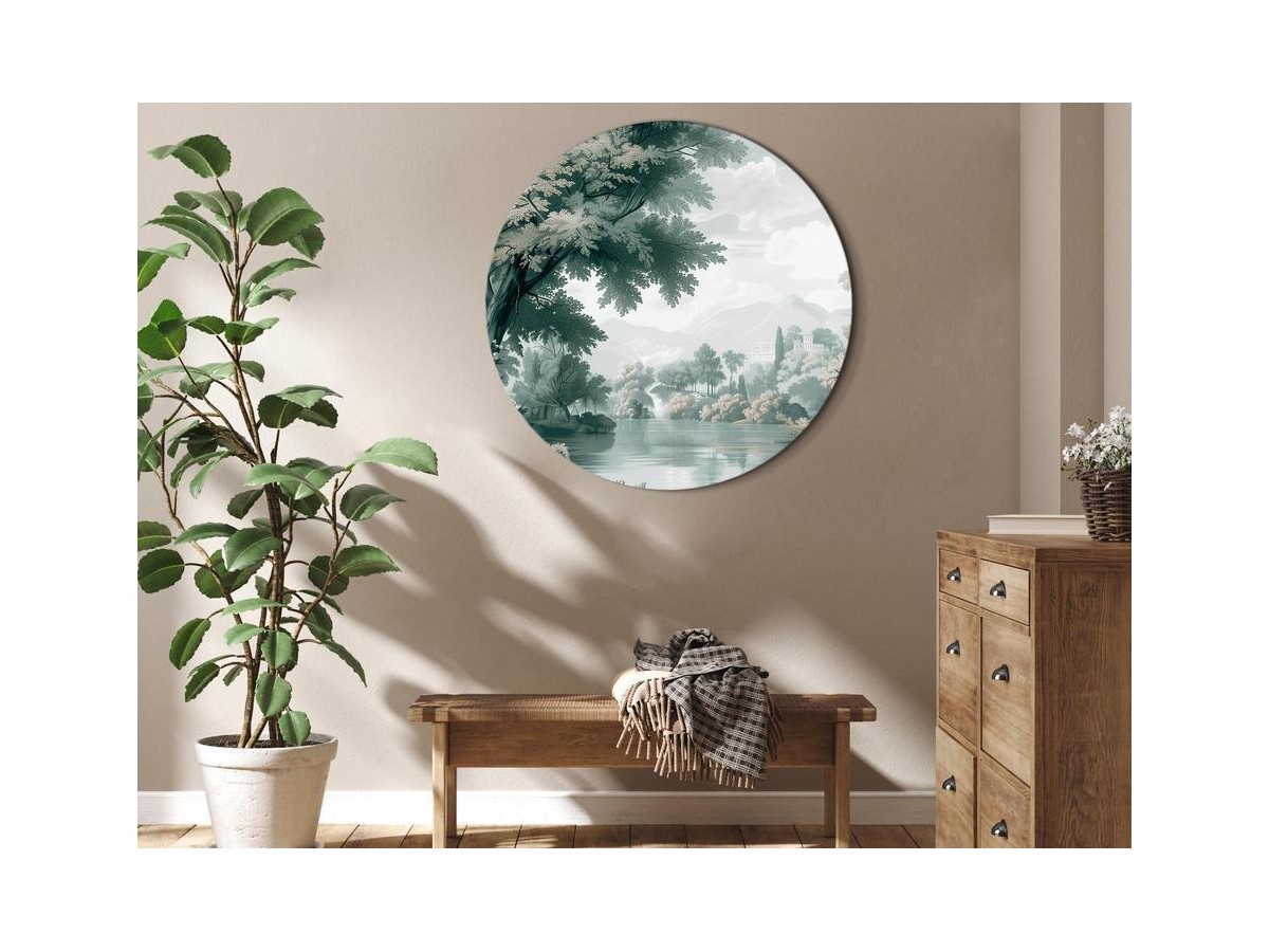 Le tableau rond ? Pourquoi pas ! Hors du commun et se distinguant des autres produits sur le marché, le tableau rond "Tableau rond - Landscape with a park and lake in retro greens" est une proposition parfaite pour les amateurs des dernières tendances. Les formes douces et arrondies apparaissent de plus en plus souvent dans nos intérieurs, que ce soit dans la ligne des meubles ou des détails architecturaux, ou dans les décorations, et cette tendance s'incarne dans les tableaux ronds. Vous recherchez une décoration atypique dont la forme ovale atypique attirera les regards des membres de la famille et des invités ? Le tableau en forme de cercle est le choix parfait ! Lors de la création de ce produit, nous avons combiné le meilleur de ce que nous offrons, c'est-à-dire des motifs uniques, une fabrication soignée et une innovation sous la forme d'un cadre rond conçu par nos ingénieurs. Grâce à cela, nos motifs populaires et à la mode prennent une nouvelle forme et peuvent être appréciés par un public encore plus large.