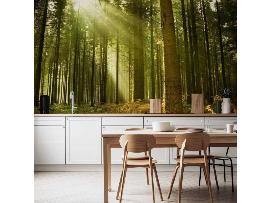 Papier peintUn "Papier peint - Pine forest – dense woodland in morning sunlight" disponible dans notre offre est une solution simple et rapide pour des personnes qui veulent redonner une nouvelle vie à leur intérieur. En effet, le...