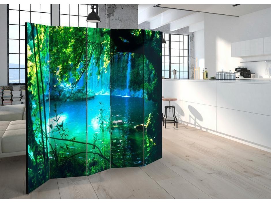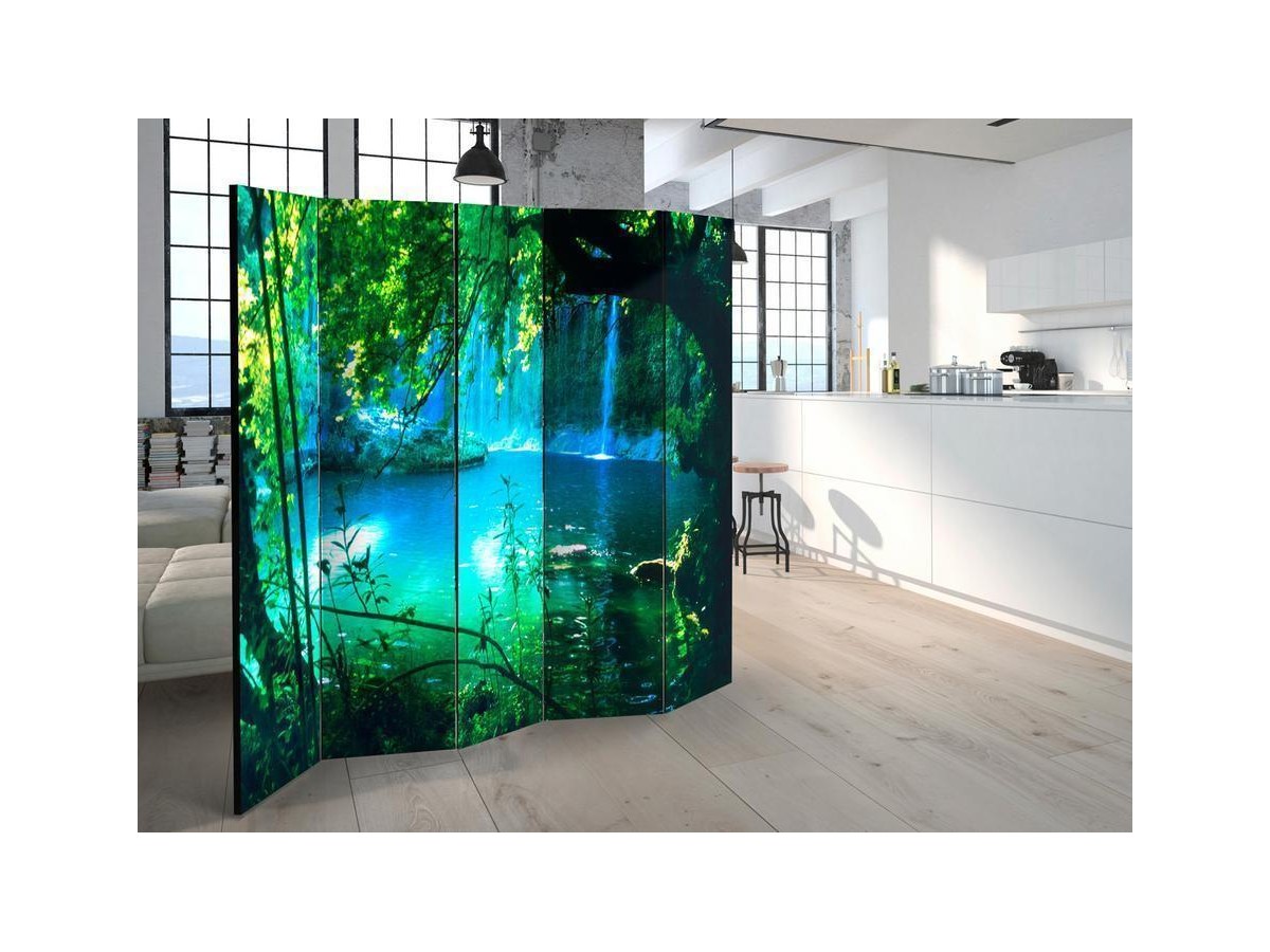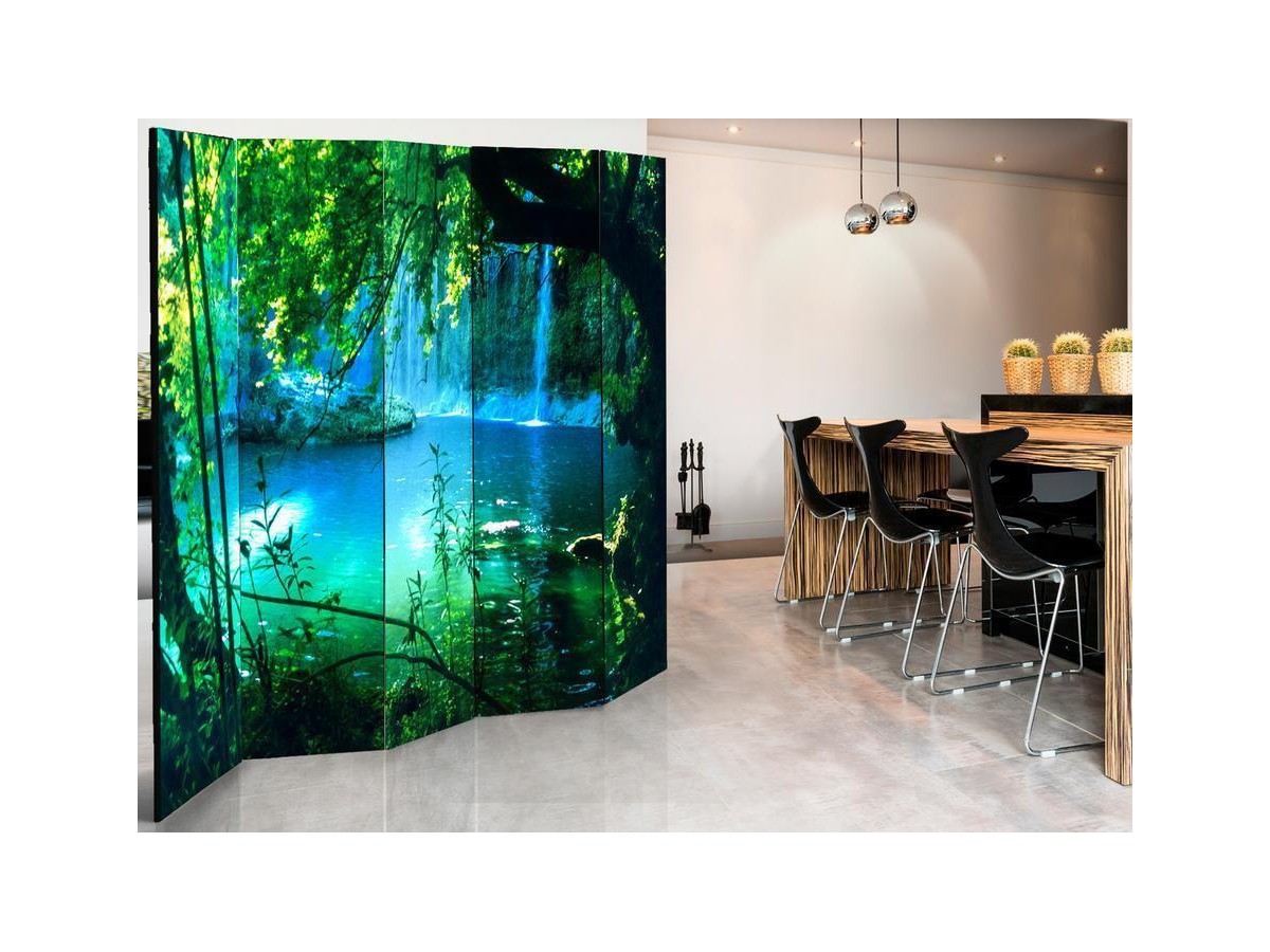 Un paravent décoratif "Paravent - Kursunlu Waterfalls II" est composé de panneaux orientables, appelés volets, en bois encadrés d'un châssis de bois et réunis par des charnières. Le paravent décoratif disponible dans notre offre se compose de trois ou de cinq parties. Tous les paravents que nous proposons ont une impression de haute qualité sur l’entoilage qui peut être une belle décoration d'intérieur. L'entoilage d’un paravent déco est tendu sur un cadre en bois solide et léger en même temps. Les panneaux sont finis avec un ruban de satin. Les charnières métalliques sont durables et très solides.Caractéristique technique