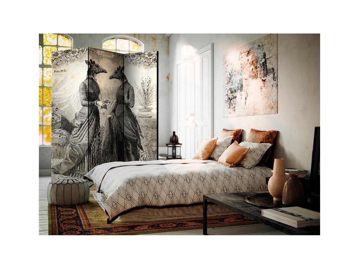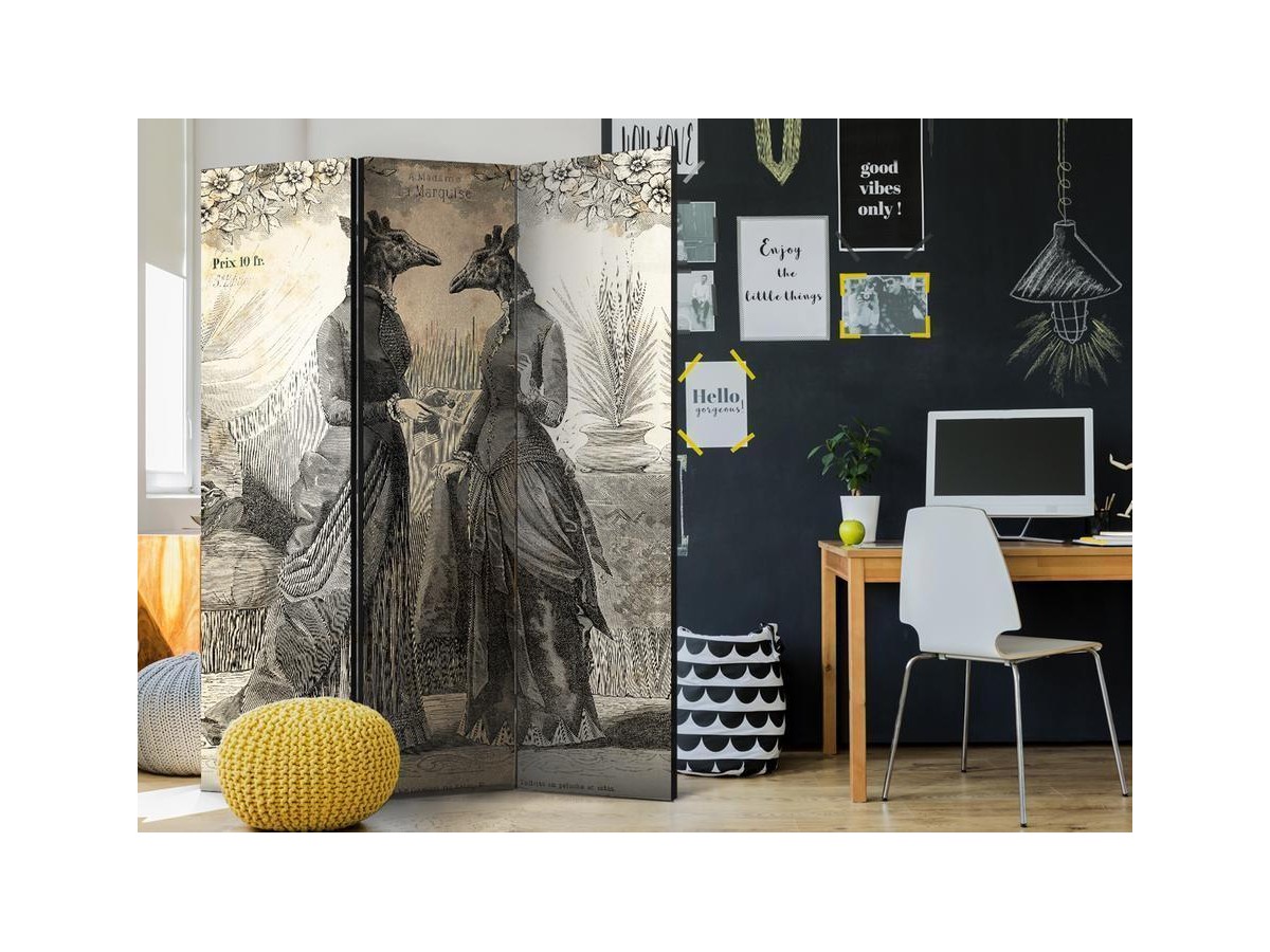 Les paravents décoratifs sont certainement une idée originale dans le domaine de la décoration intérieure. Les paravents remplissent un rôle décoratif, mais aussi bien pratique et fonctionnel. En effet, un paravent intérieur "Paravent - Conversation" est un meuble formant une cloison amovible et repliable qui peut servir pour délimiter un espace et diviser une grande pièce en deux espaces séparés. Le paravent intérieur est une invention qui est apparue pour la première fois en Chine. Depuis le début de leur existence, les paravents remplissaient des différentes fonctions, comme protéger contre les courants d'air ou bien encore créer un espace isolé pour l'intimité. De nos jours, le paravent intérieur est une belle décoration intérieure, qui permet aussi de gérer l'espace d’une ou de plusieurs pièces selon notre volonté. Le paravent intérieur est également utilisé dans les locaux de service, comme un coiffeur, un cabinet médical ou un bureau comptable pour créer un espace propice à l’intimité ou bien encore à la concentration.
