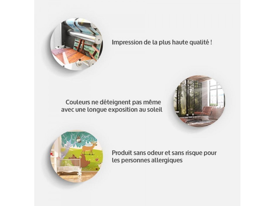 Les papiers peints disponibles dans notre vaste offre représentent des impressions numériques de très haute qualité jusqu'à 600 dpi. Le niveau dpi concerne la résolution, qui est essentielle pour bien rendre les détails des images visibles sur les papiers peints. Grâce à la précision des motifs et des dessins sur nos papiers peints, nous créons un effet visuel spectaculaire qui vous permet de vous immerger complètement dans une atmosphère créée par la décoration intérieure. Les impressions numériques pour notre papier peint chambre sont réalisées sur l’intissé de grammage de 110 g/m². Le grammage du papier peint chambre, également appelé force du papier, est une grandeur correspondant à sa masse par unité de surface. La largeur d'un seul rouleau de notre papier peint intissé est de 50 cm.