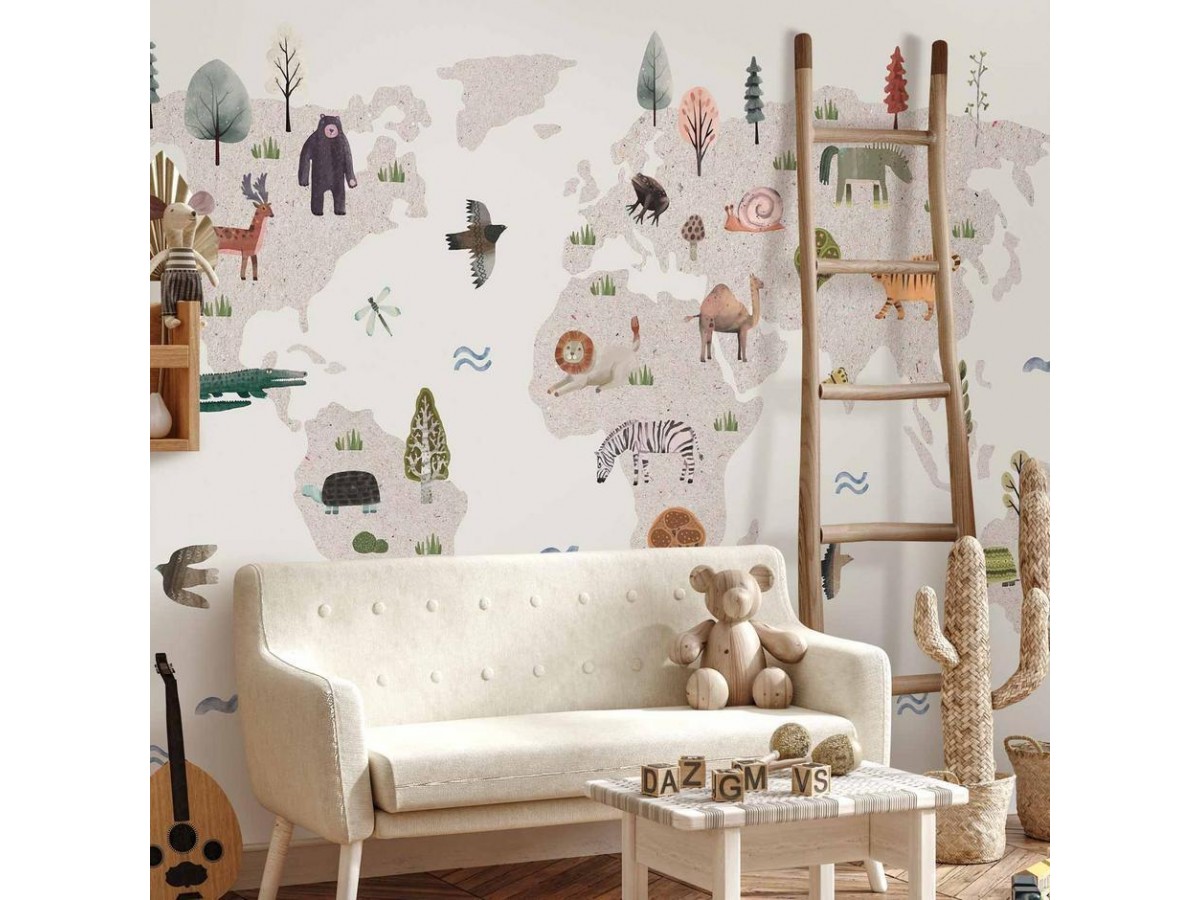 Papier peintUn "Papier peint - Beige World - Continents With Animals in Muted Colours" disponible dans notre offre est une solution simple et rapide pour des personnes qui veulent redonner une nouvelle vie à leur intérieur. En effet,...