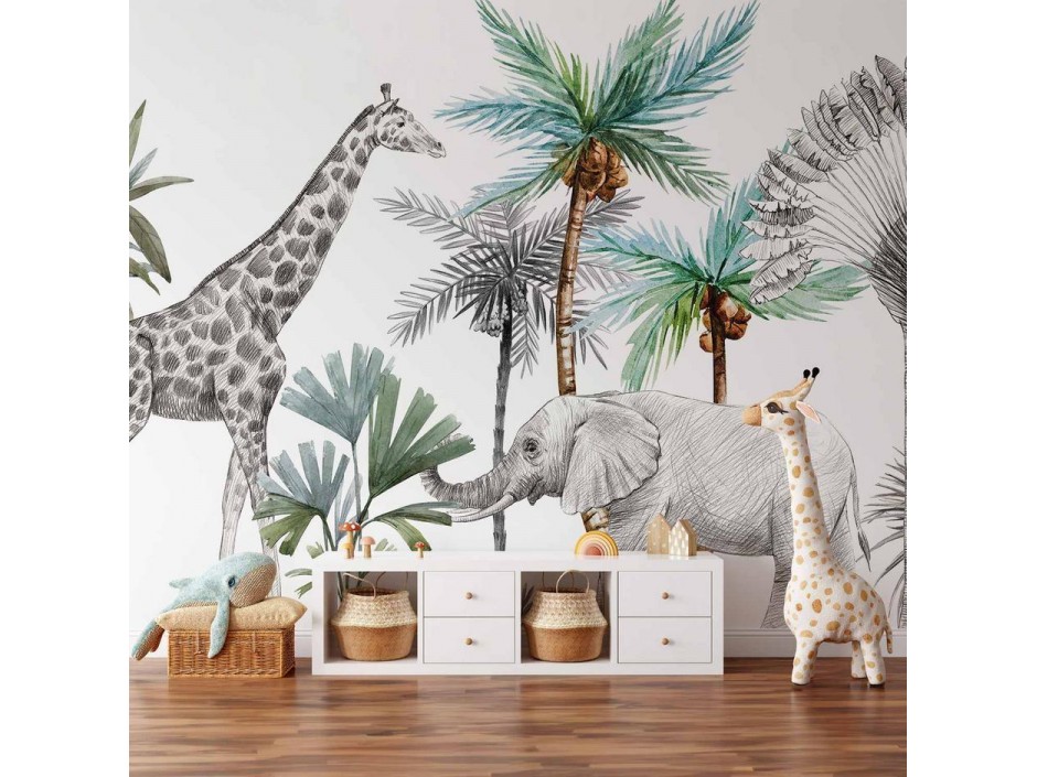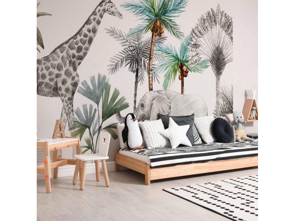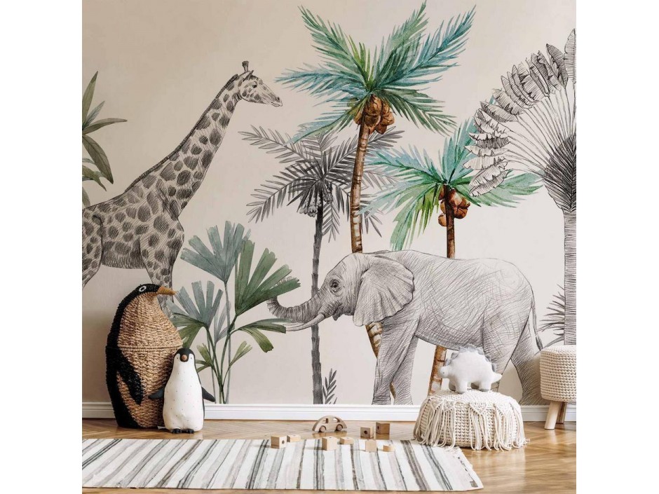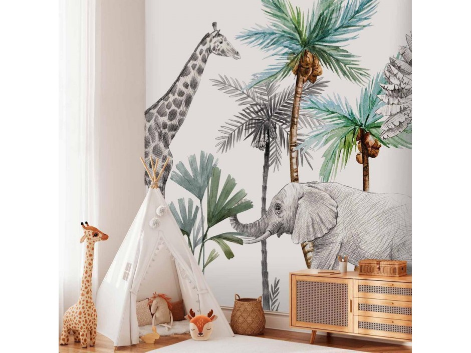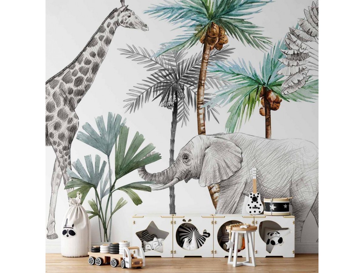Papier peintUn "Papier peint - Jungle Animals Wallpaper for Children's Room in Cartoon Style" disponible dans notre offre est une solution simple et rapide pour des personnes qui veulent redonner une nouvelle vie à leur intérieur. En...