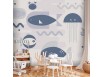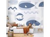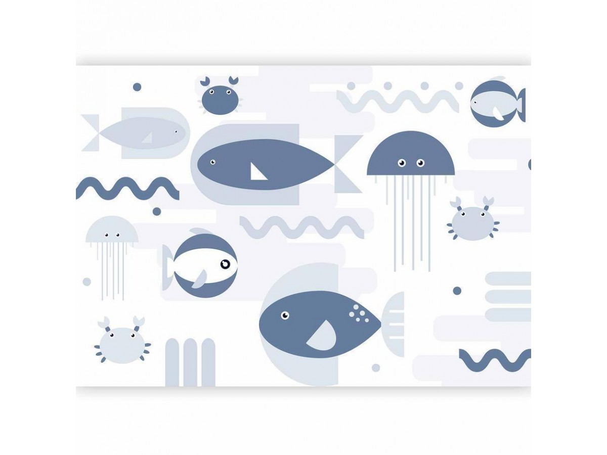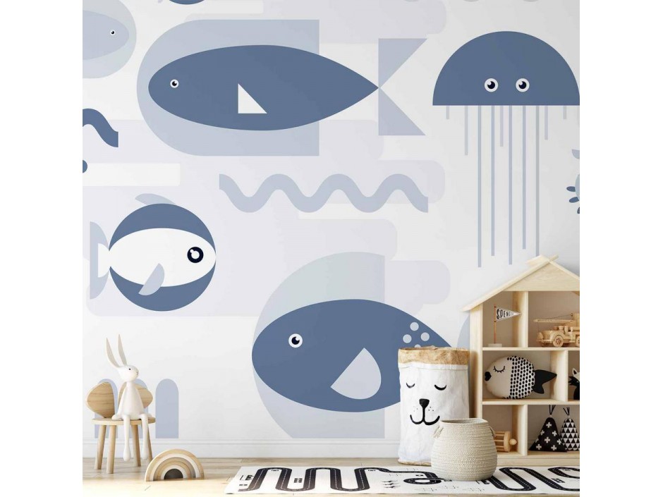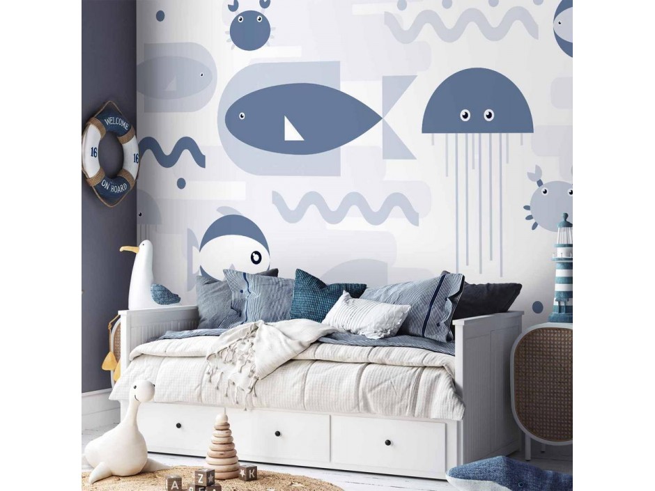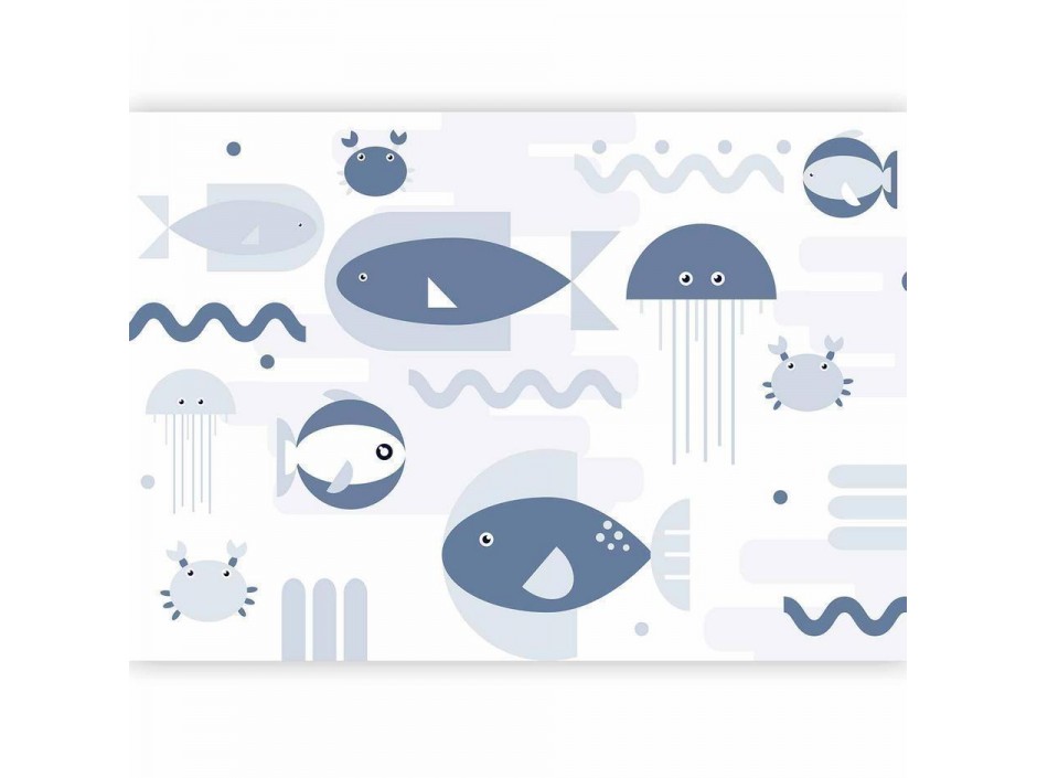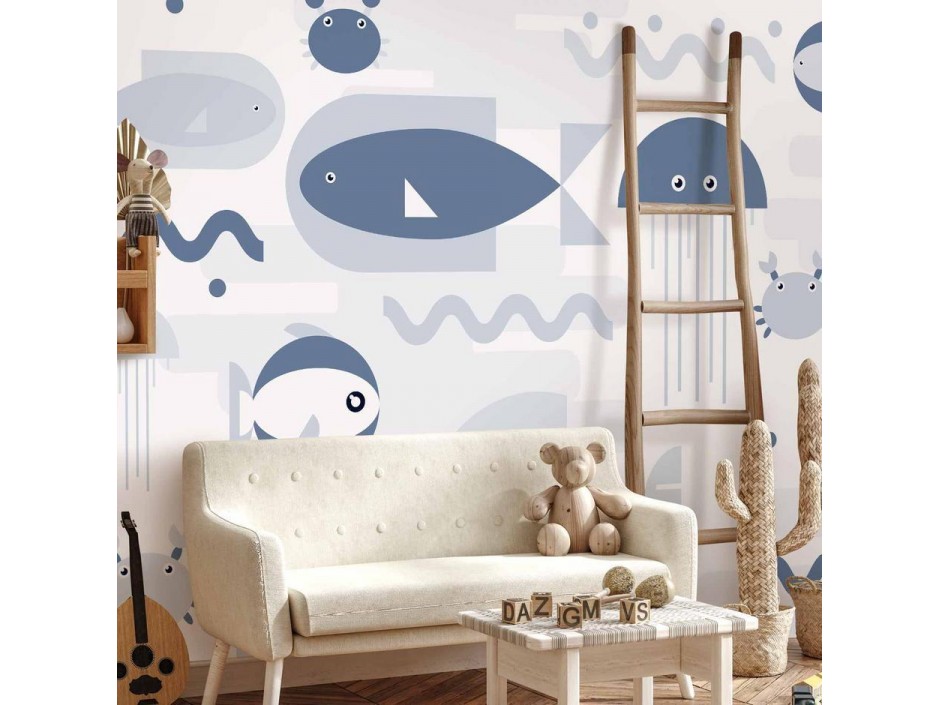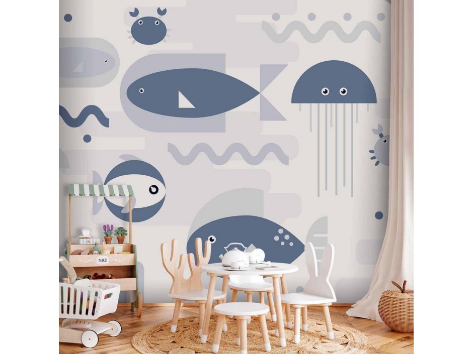 Papier peint - Minimalist ocean - geometric fish and crabs in water for kids