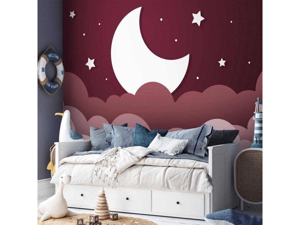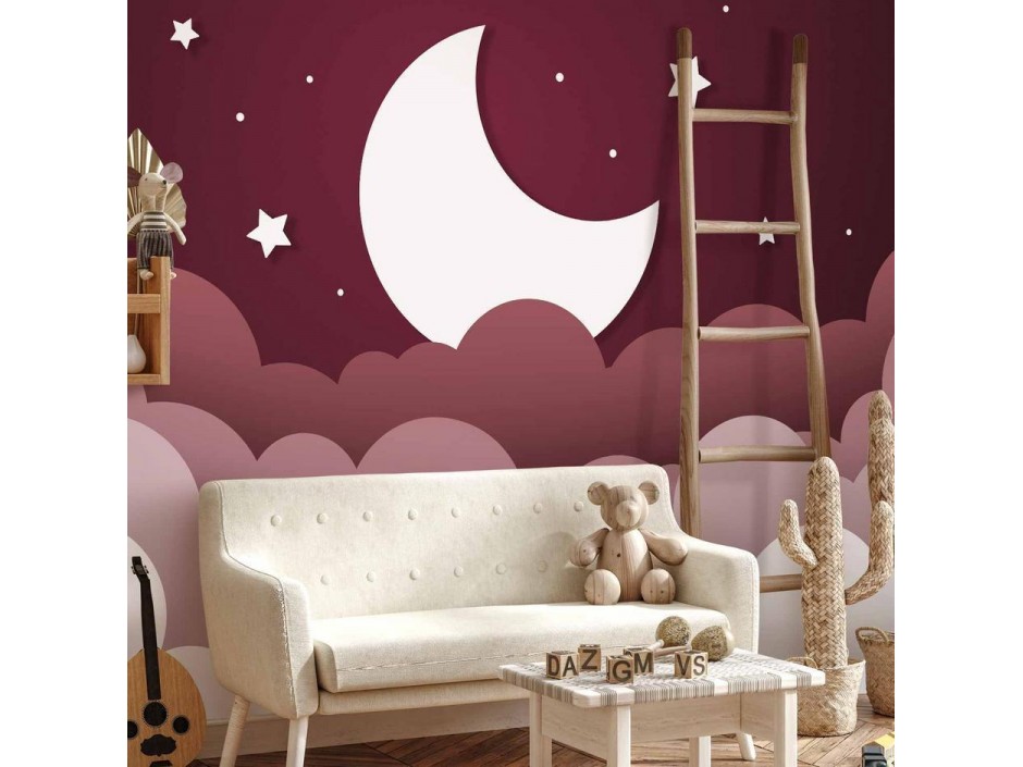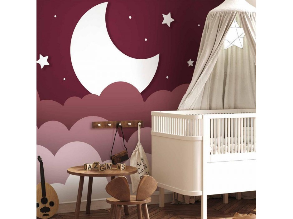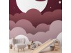 Papier peint - Moon dream - clouds in a maroon sky with stars for children