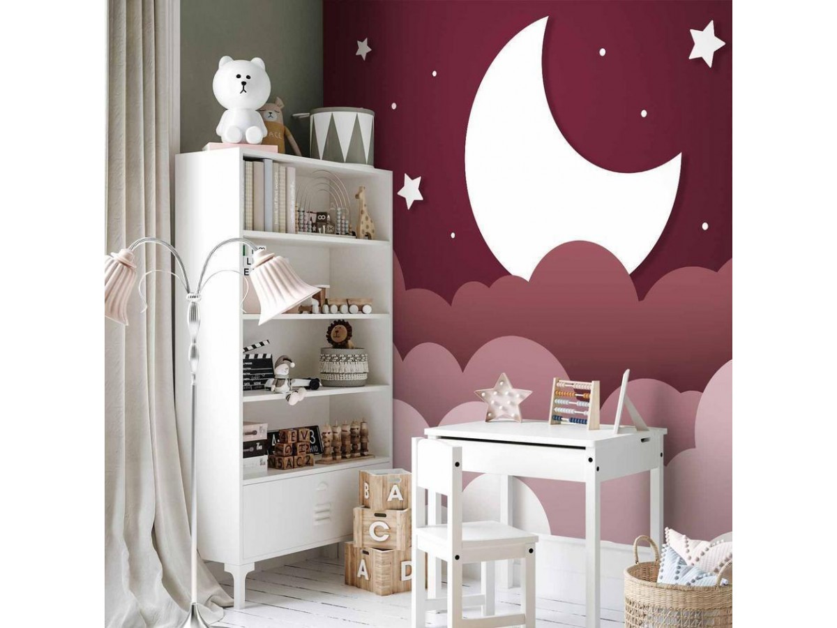 Papier peintUn "Papier peint - Moon dream - clouds in a maroon sky with stars for children" disponible dans notre offre est une solution simple et rapide pour des personnes qui veulent redonner une nouvelle vie à leur intérieur. En...