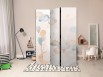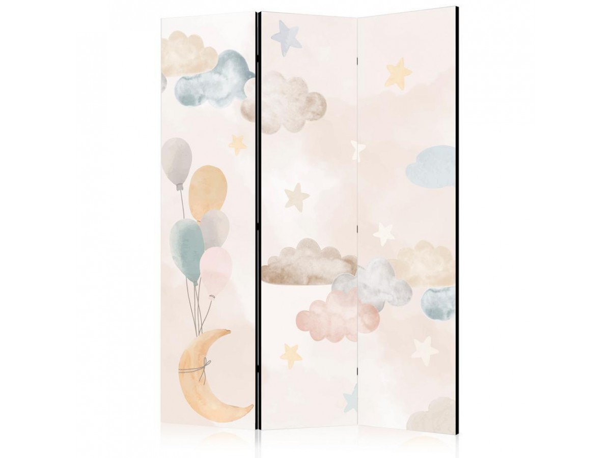 Paravent intérieur "Paravent - Fairy-Tale Moon - Moon with Balloons Among Clouds and Stars in Subdued Colors on a Light Beige Background"Les paravents décoratifs sont certainement une idée originale dans le domaine de la décoration...