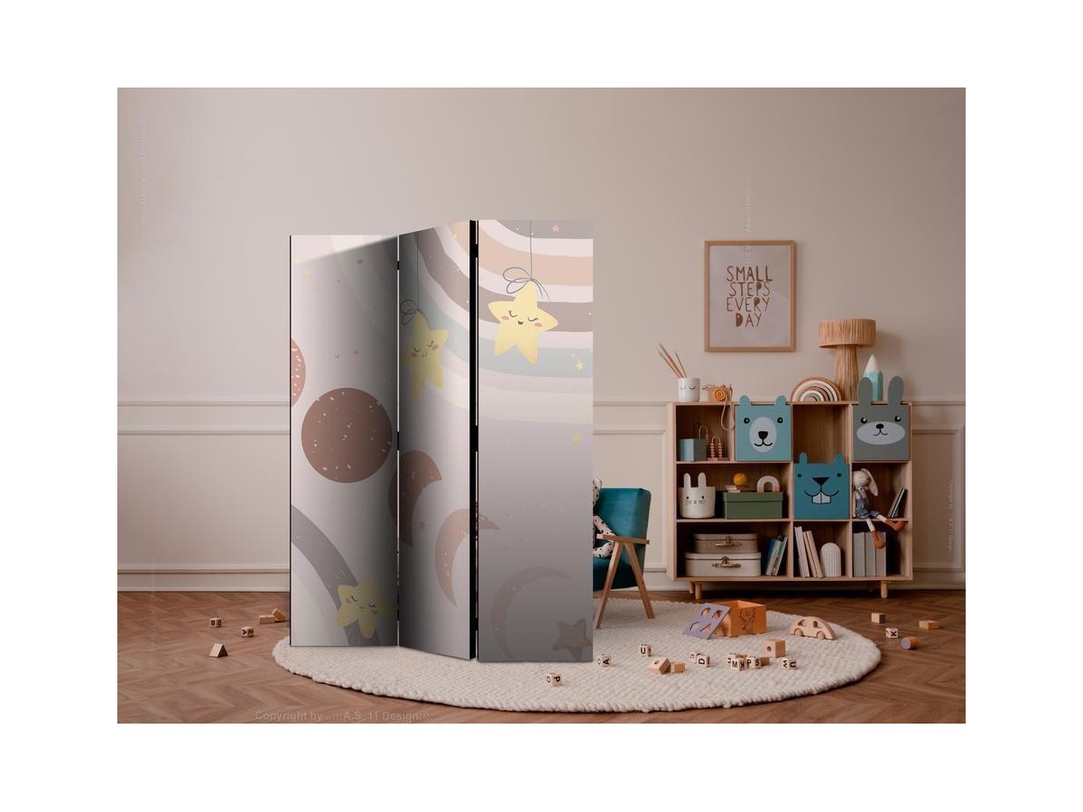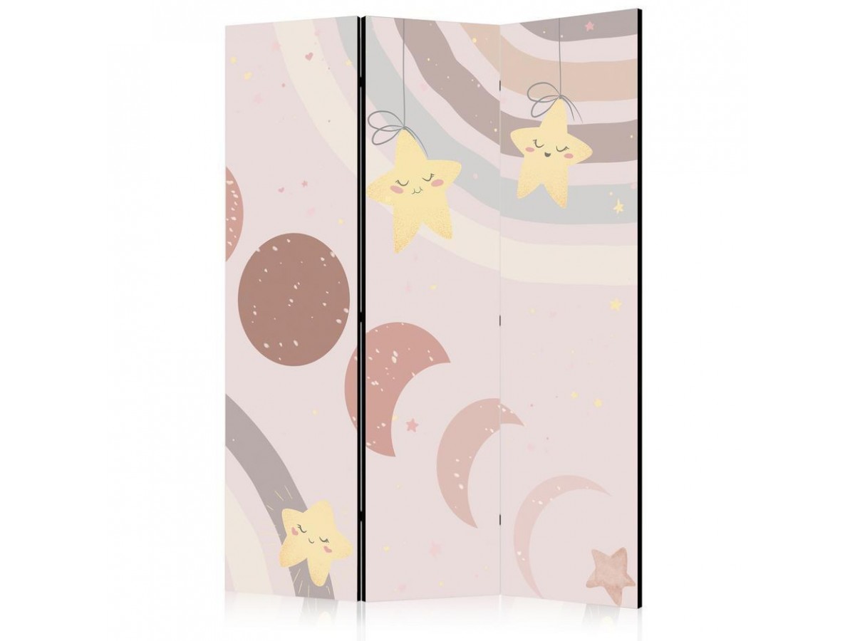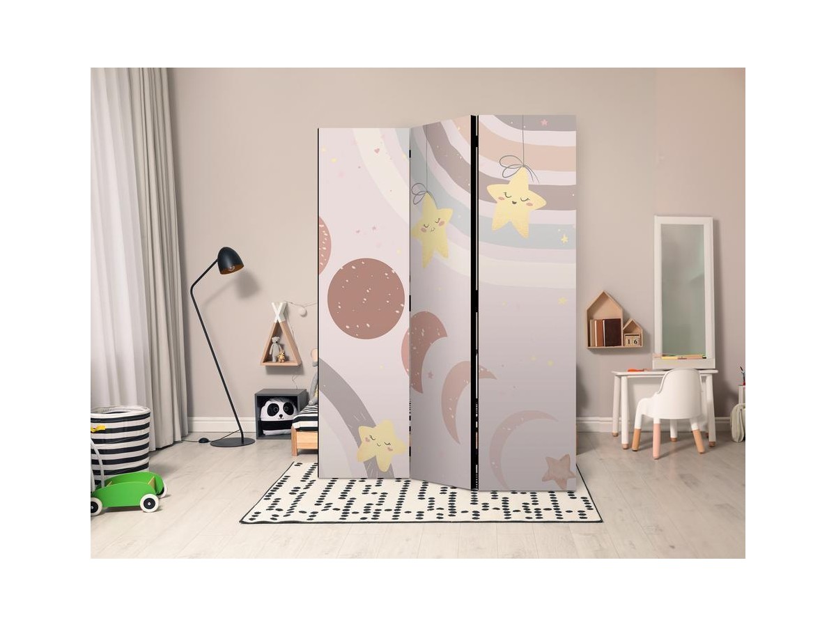 Paravent intérieur "Paravent - Joyful Sky - Yellow Cheerful Stars with a Rainbow Against the Phases of the Moon - in the Sky Colored Light Beige"