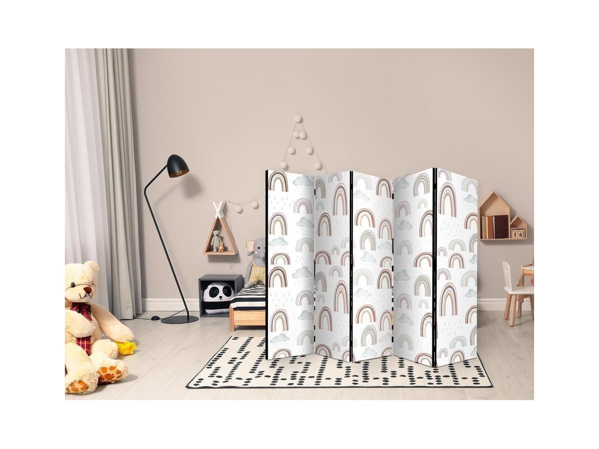 Paravent intérieur "Paravent - Rainbows and Clouds - Rainbows of Various Sizes in Muted Colors Among Rain Clouds in a Pale Blue Shade"Les paravents décoratifs sont certainement une idée originale dans le domaine de la décoration...