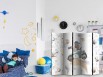 Les paravents décoratifs sont certainement une idée originale dans le domaine de la décoration intérieure. Les paravents remplissent un rôle décoratif, mais aussi bien pratique et fonctionnel. En effet, un paravent intérieur "Paravent - Galactic Races - Bear Participating in Car Races Among Planets - Clouds - and Stars in Pastel Hues" est un meuble formant une cloison amovible et repliable qui peut servir pour délimiter un espace et diviser une grande pièce en deux espaces séparés. Le paravent intérieur est une invention qui est apparue pour la première fois en Chine. Depuis le début de leur existence, les paravents remplissaient des différentes fonctions, comme protéger contre les courants d'air ou bien encore créer un espace isolé pour l'intimité. De nos jours, le paravent intérieur est une belle décoration intérieure, qui permet aussi de gérer l'espace d’une ou de plusieurs pièces selon notre volonté. Le paravent intérieur est également utilisé dans les locaux de service, comme un coiffeur, un cabinet médical ou un bureau comptable pour créer un espace propice à l’intimité ou bien encore à la concentration.